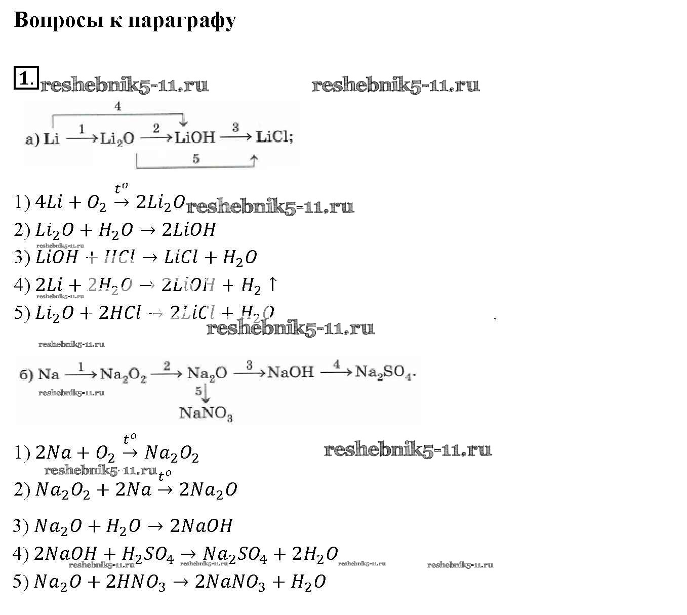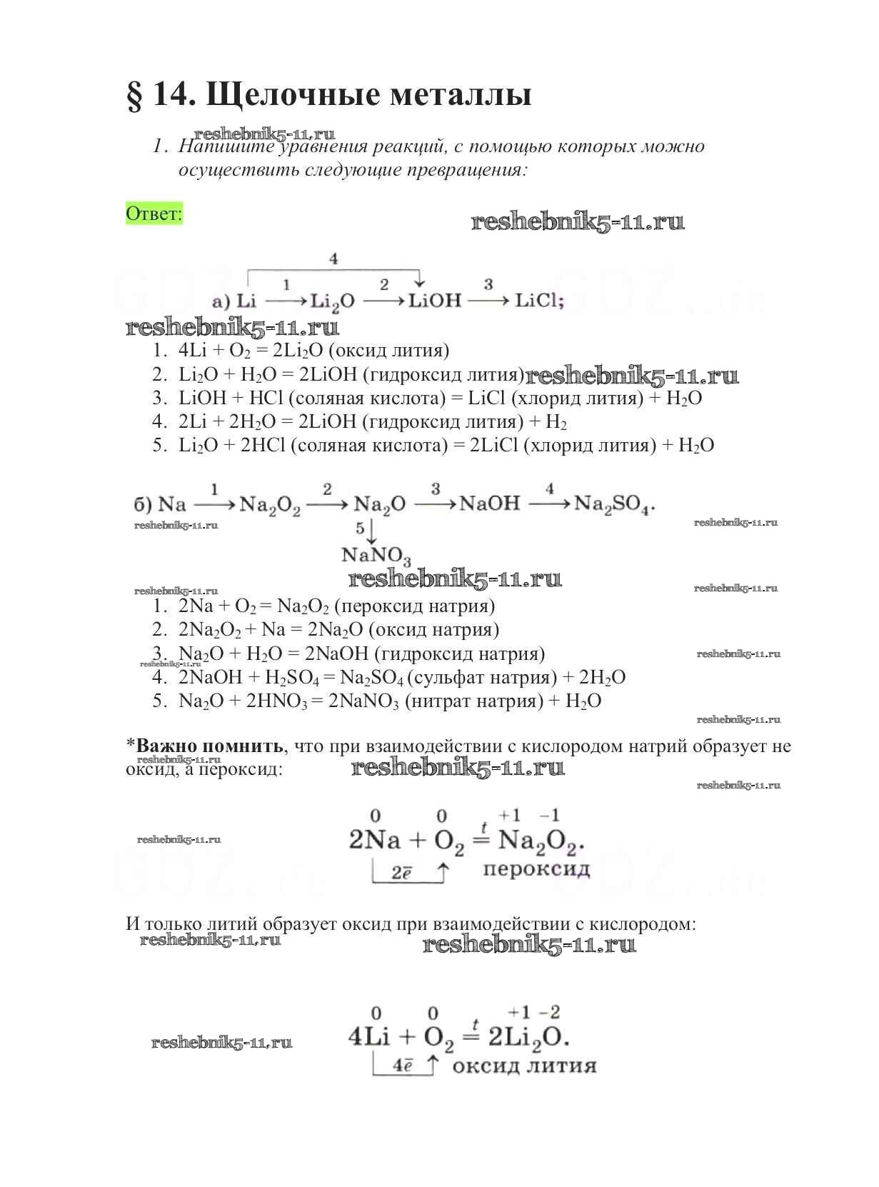 Готовая домашняя работа с ответами по Химии за 9 класс Габриелян Учебник Вертикаль Дрофа 2014 ФГОС - §14. Щелочные металлы 1