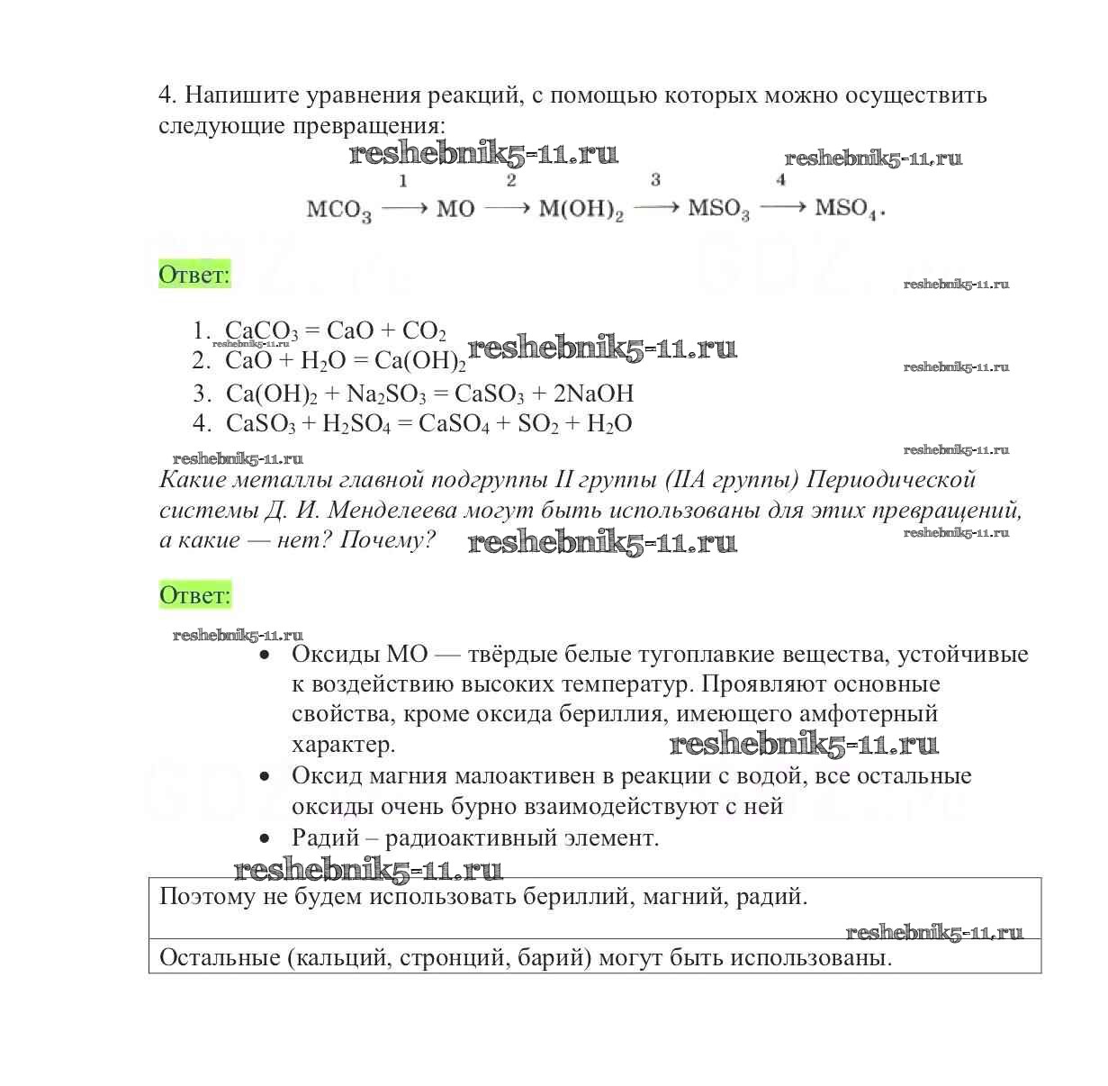 Готовая домашняя работа с ответами по Химии за 9 класс Габриелян Учебник Вертикаль Дрофа 2014 ФГОС - §15. Бериллий, магний и щёлочноземельные металлы 4