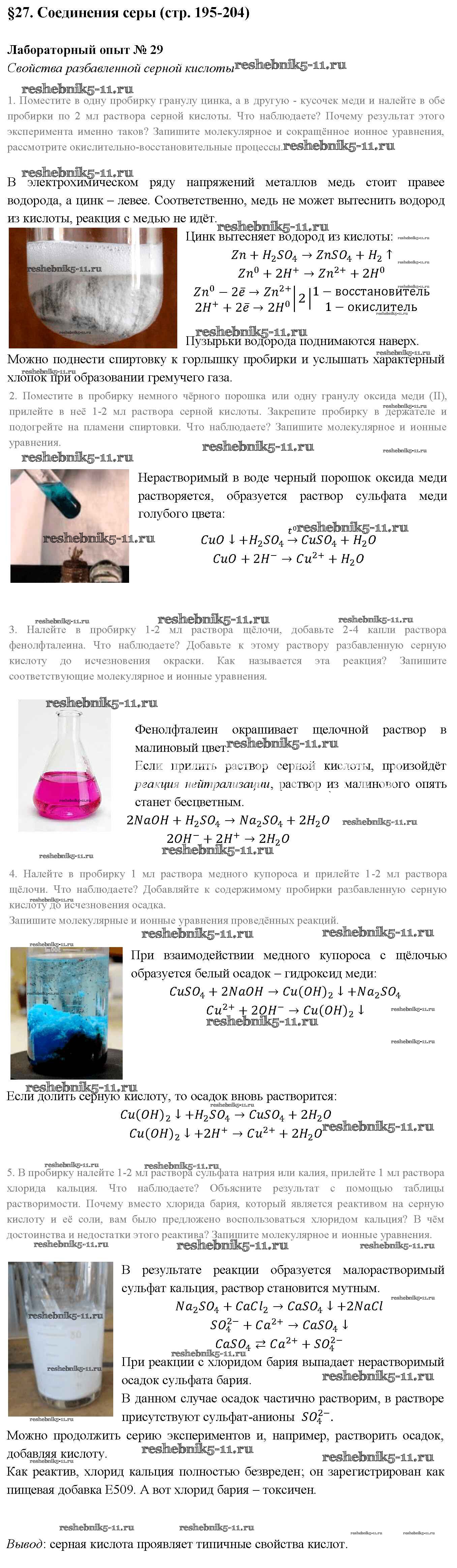 Готовая домашняя работа с ответами по Химии за 9 класс Габриелян Учебник Вертикаль Дрофа 2014 ФГОС - Лабораторная работа №29
