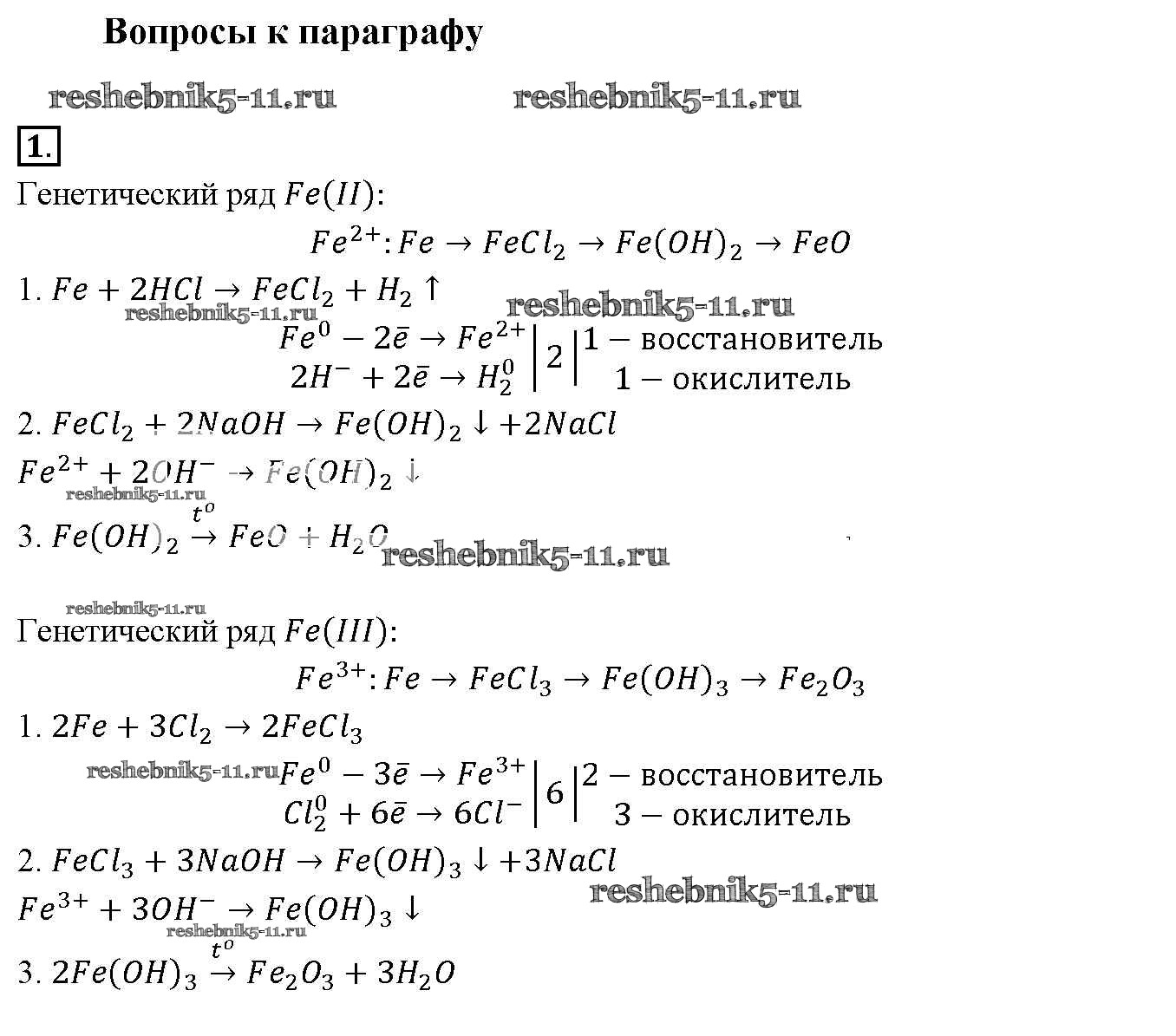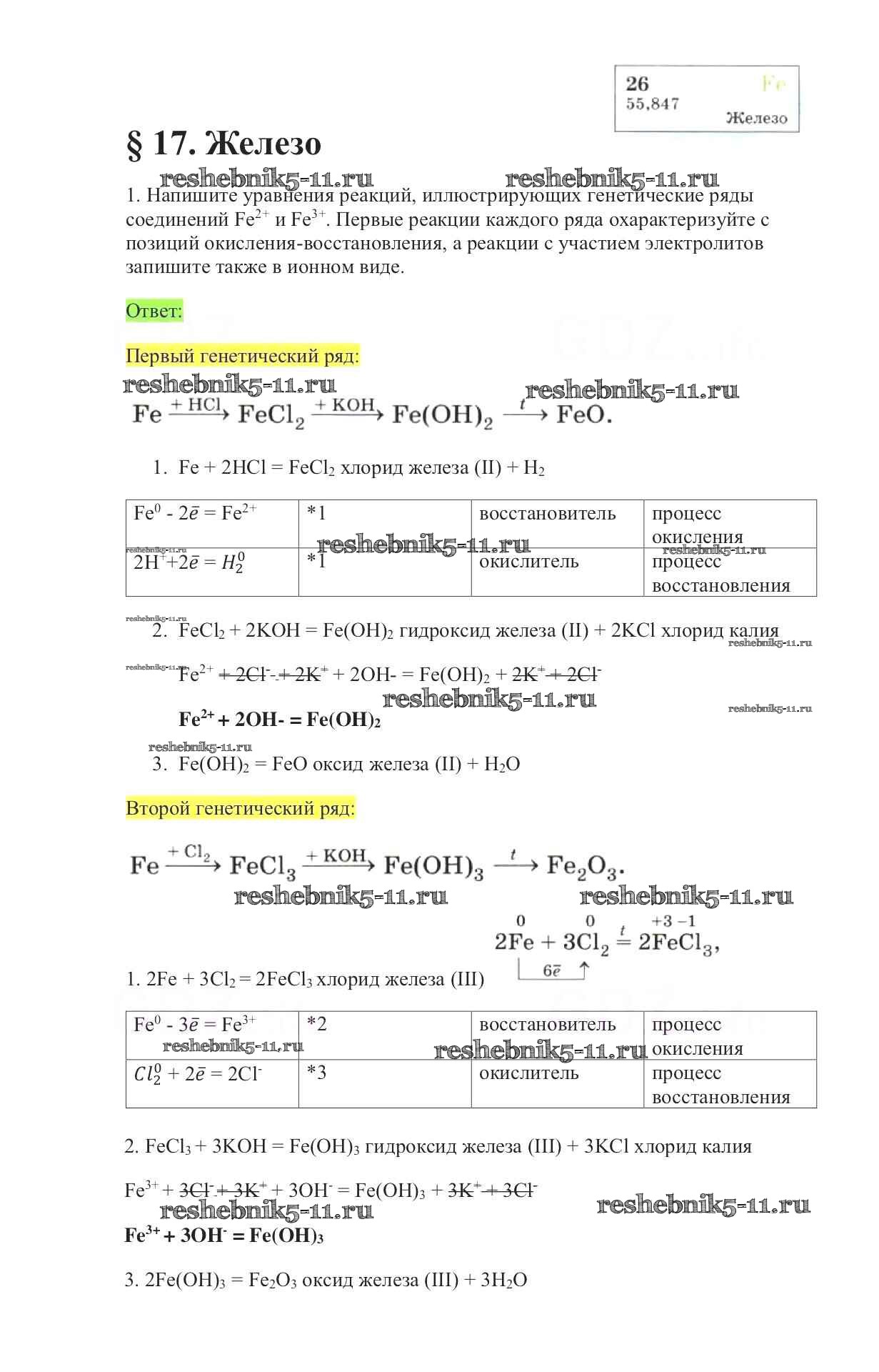 Готовая домашняя работа с ответами по Химии за 9 класс Габриелян Учебник Вертикаль Дрофа 2014 ФГОС - §17. Железо 1