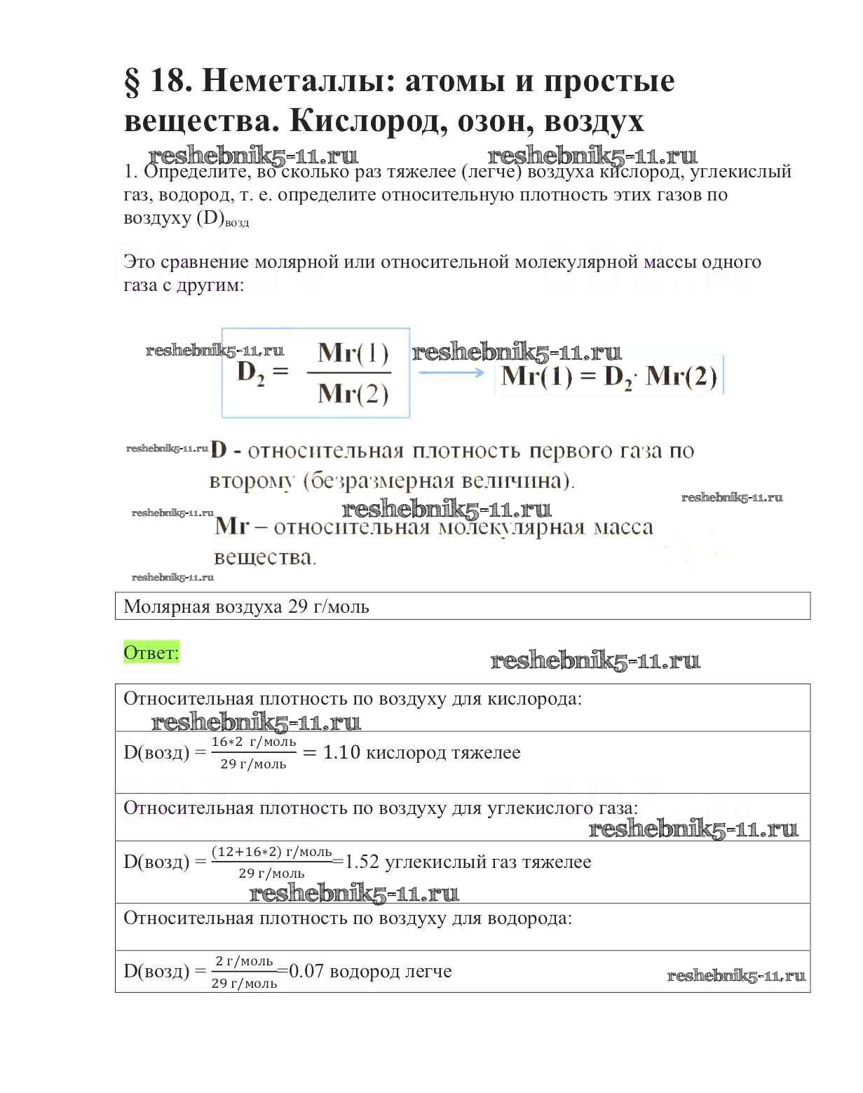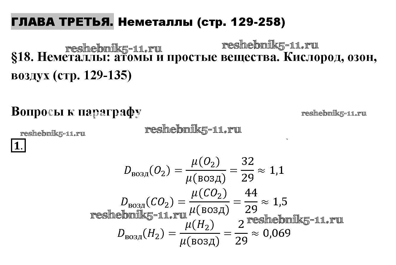 Готовая домашняя работа с ответами по Химии за 9 класс Габриелян Учебник Вертикаль Дрофа 2014 ФГОС - §18. Неметаллы: атомы и простые вещества. Кислород,озон,воздух 1