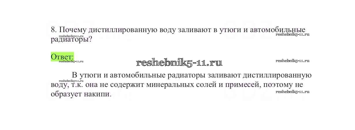 Готовая домашняя работа с ответами по Химии за 9 класс Габриелян Учебник Вертикаль Дрофа 2014 ФГОС - §21. Вода в жизни человека 8