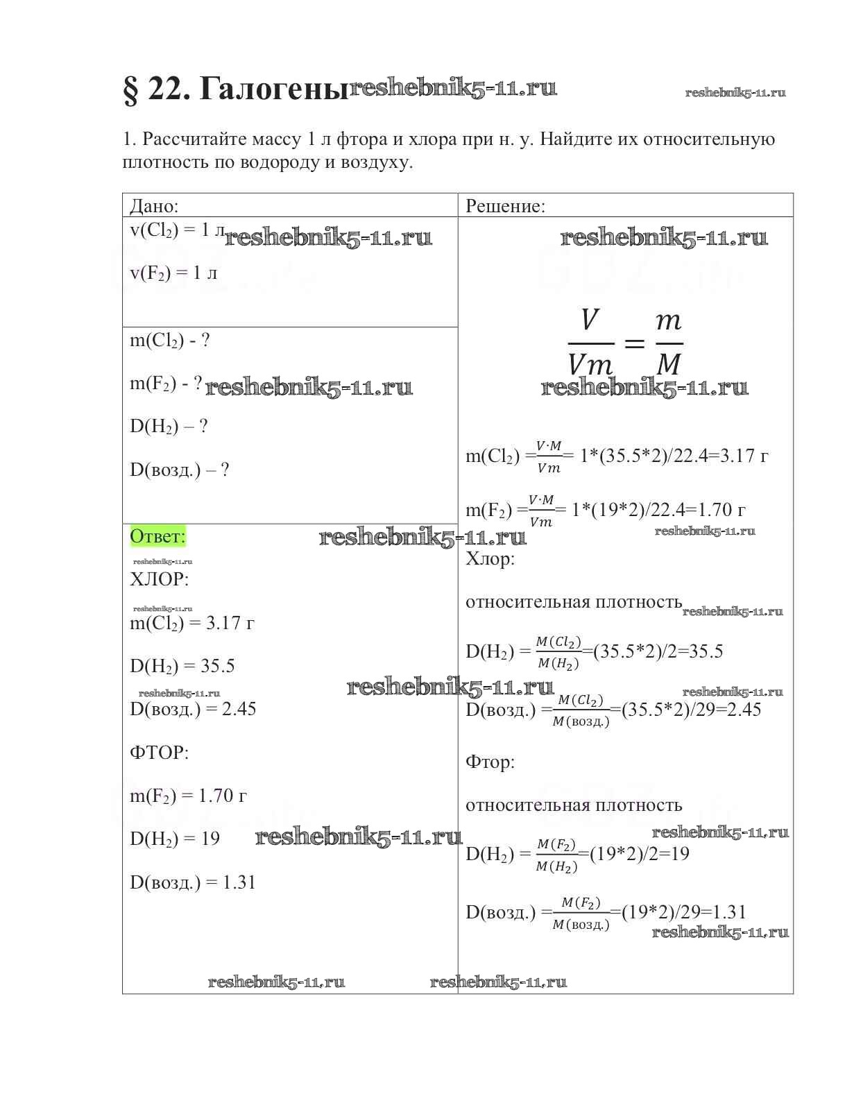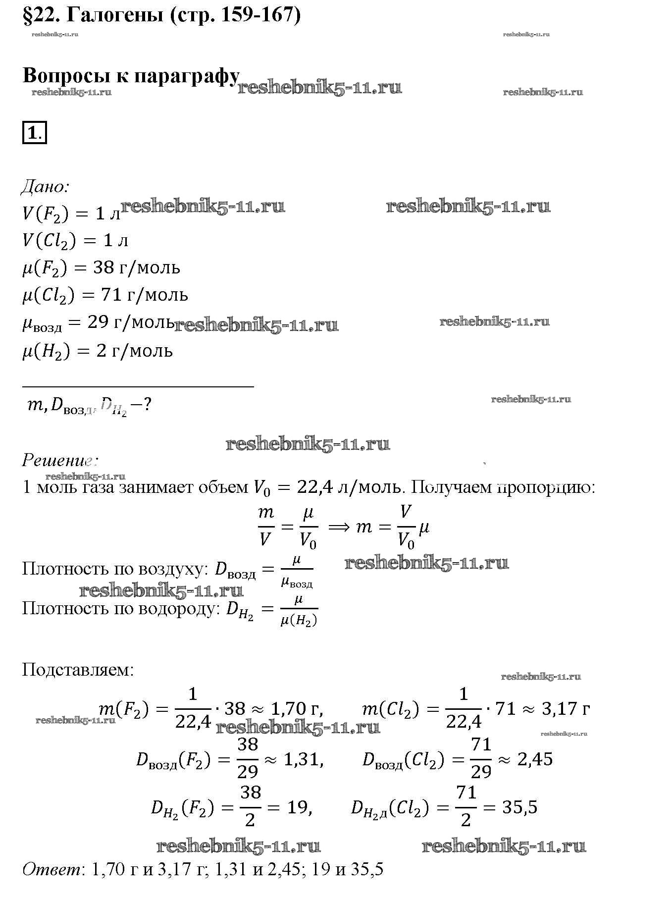 Готовая домашняя работа с ответами по Химии за 9 класс Габриелян Учебник Вертикаль Дрофа 2014 ФГОС - §22. Галогены 1