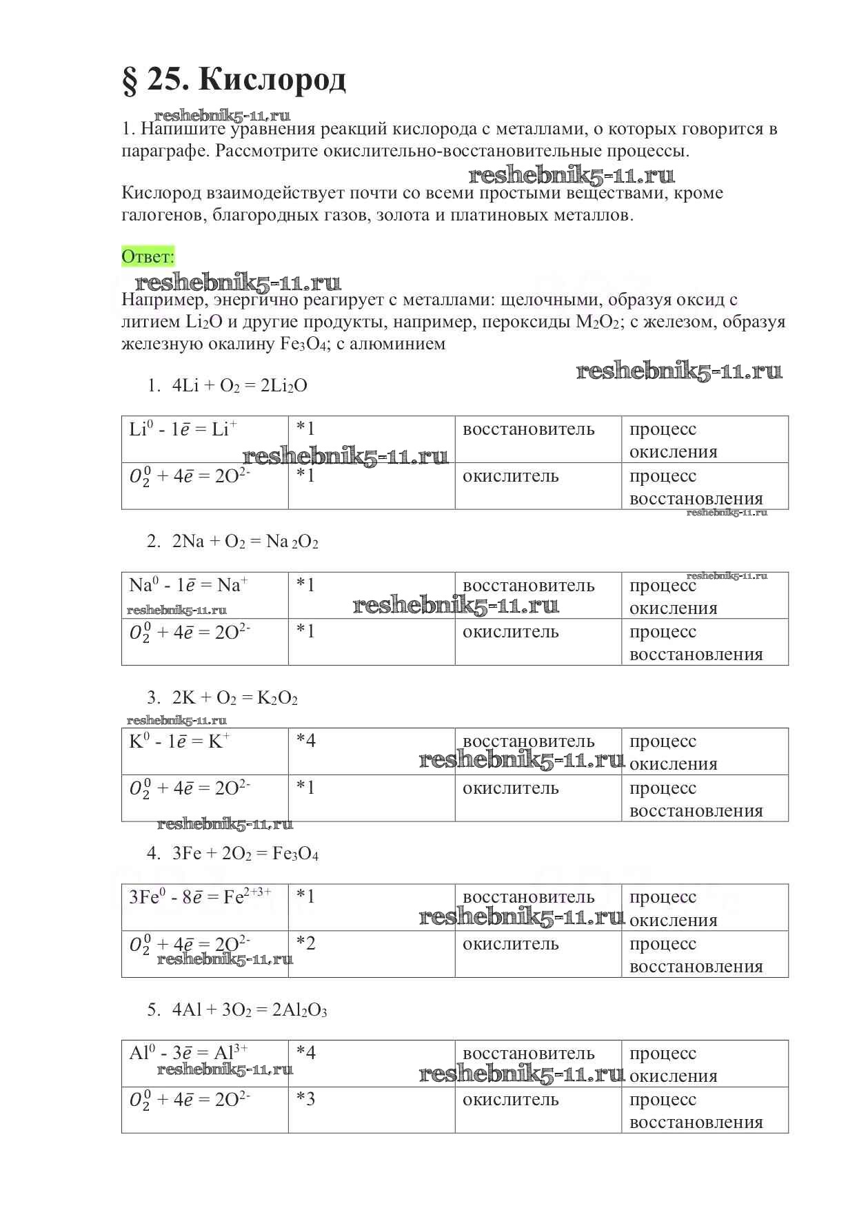 Готовая домашняя работа с ответами по Химии за 9 класс Габриелян Учебник Вертикаль Дрофа 2014 ФГОС - §25. Кислород 1