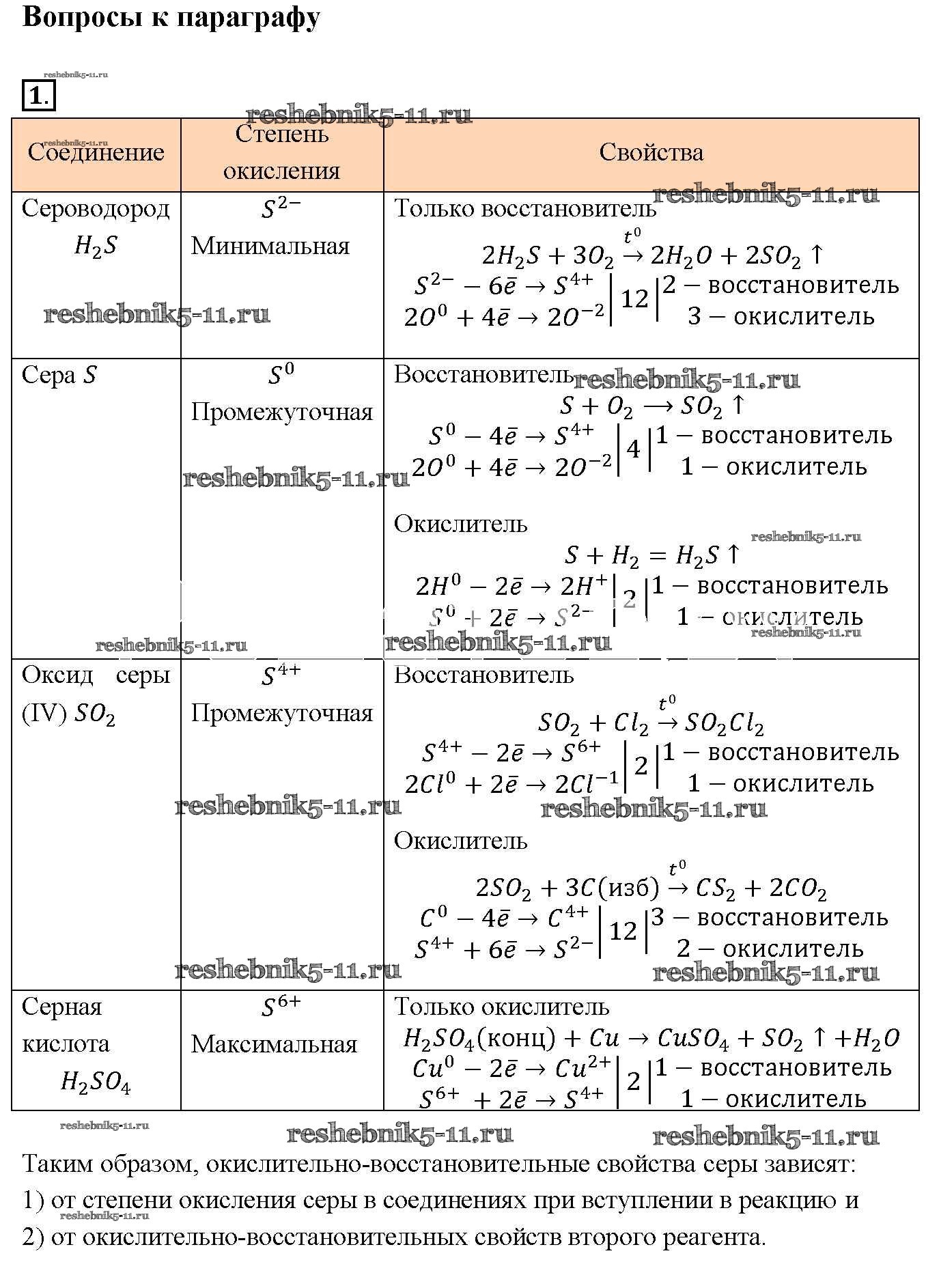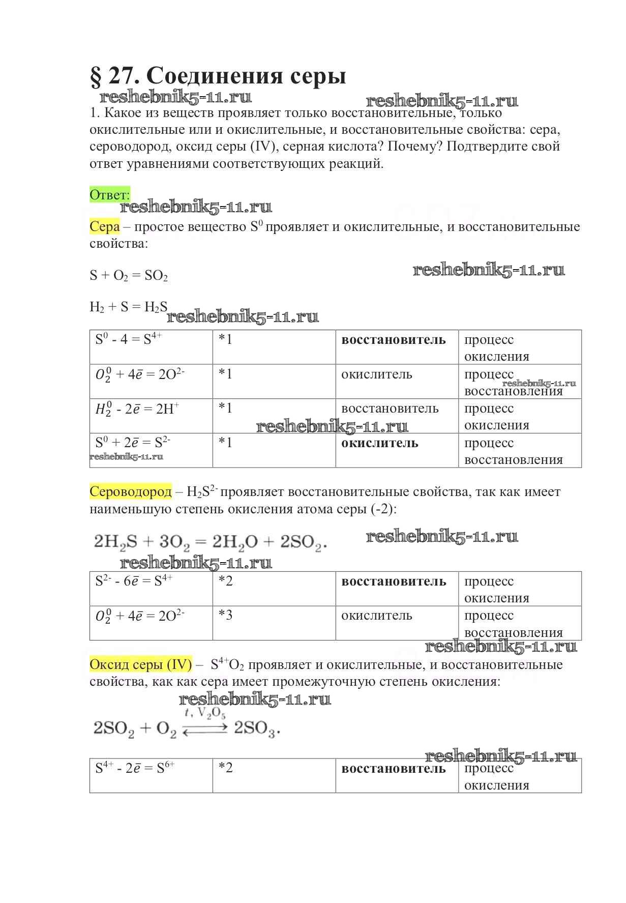 Готовая домашняя работа с ответами по Химии за 9 класс Габриелян Учебник Вертикаль Дрофа 2014 ФГОС - §27. Соединения серы 1