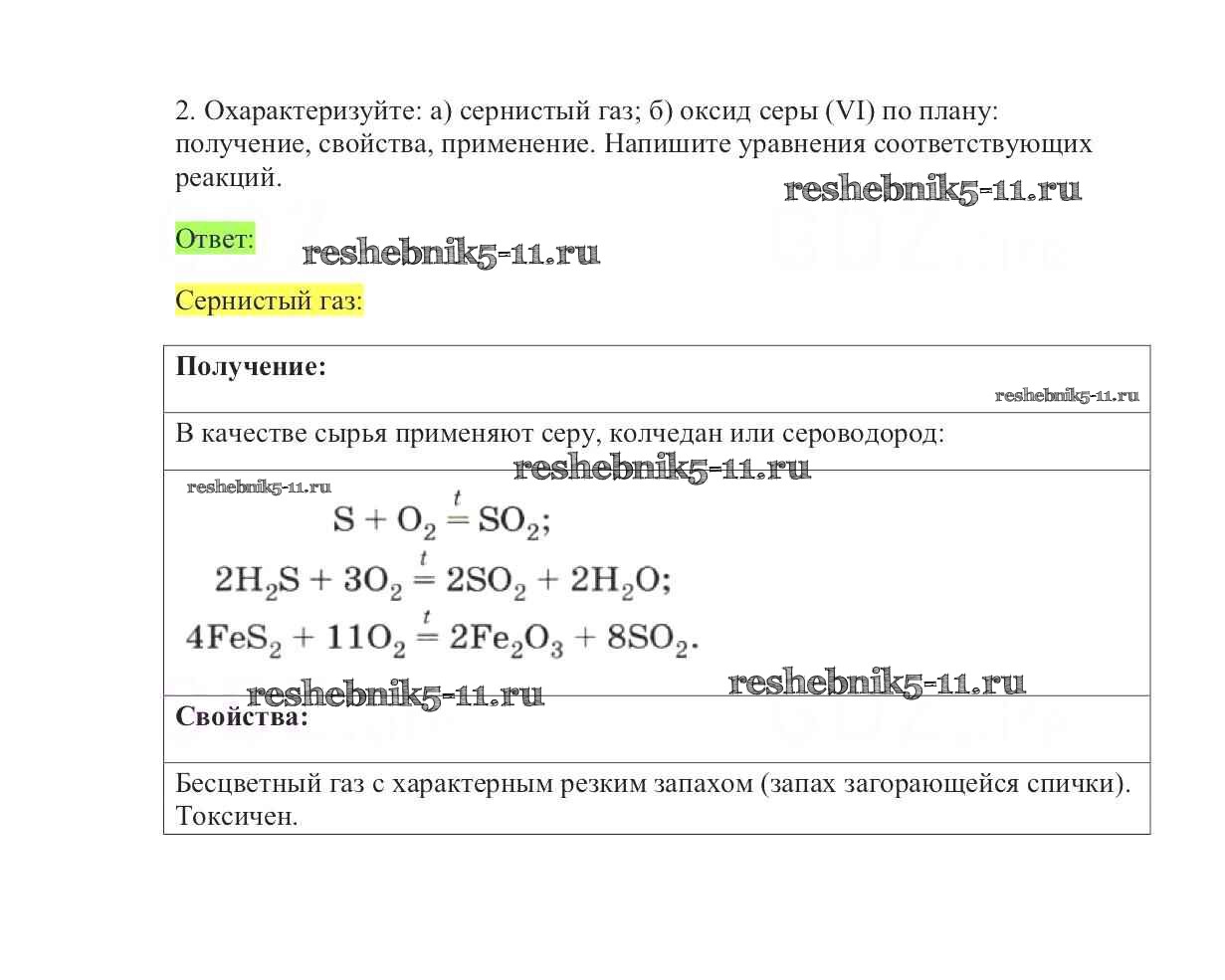 Готовая домашняя работа с ответами по Химии за 9 класс Габриелян Учебник Вертикаль Дрофа 2014 ФГОС - §27. Соединения серы 2