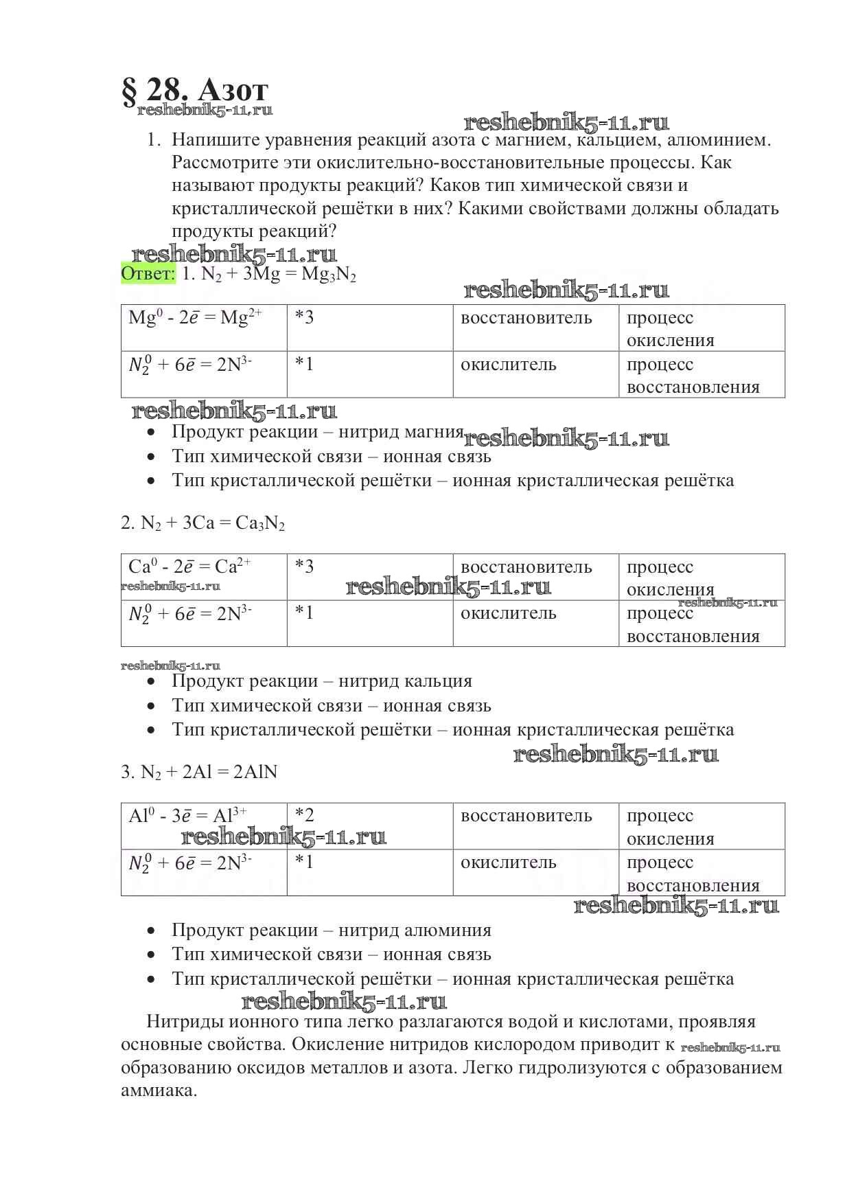 Готовая домашняя работа с ответами по Химии за 9 класс Габриелян Учебник Вертикаль Дрофа 2014 ФГОС - §28. Азот 1
