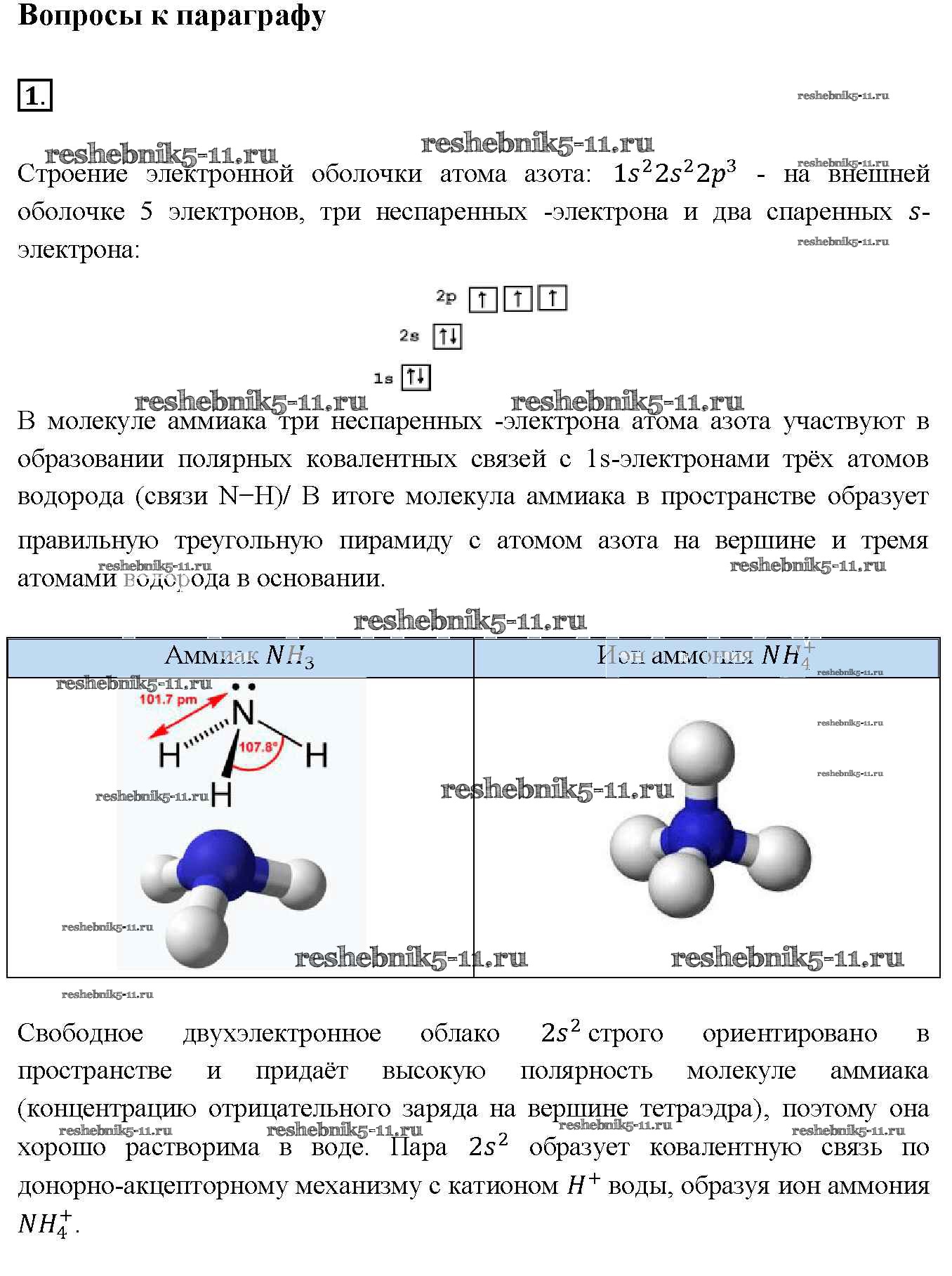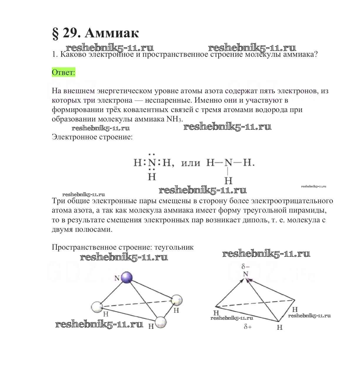 Готовая домашняя работа с ответами по Химии за 9 класс Габриелян Учебник Вертикаль Дрофа 2014 ФГОС - §29. Аммиак 1