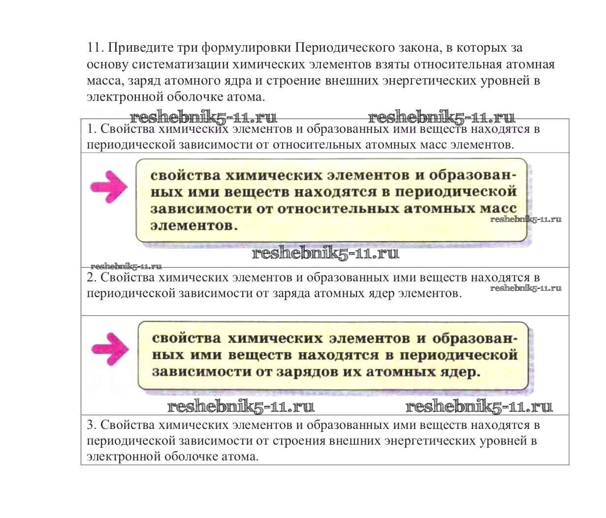 Готовая домашняя работа с ответами по Химии за 9 класс Габриелян Учебник Вертикаль Дрофа 2014 ФГОС - §3. Периодический закон и Периодическая система химических элементов Д. И. Менделеева 11