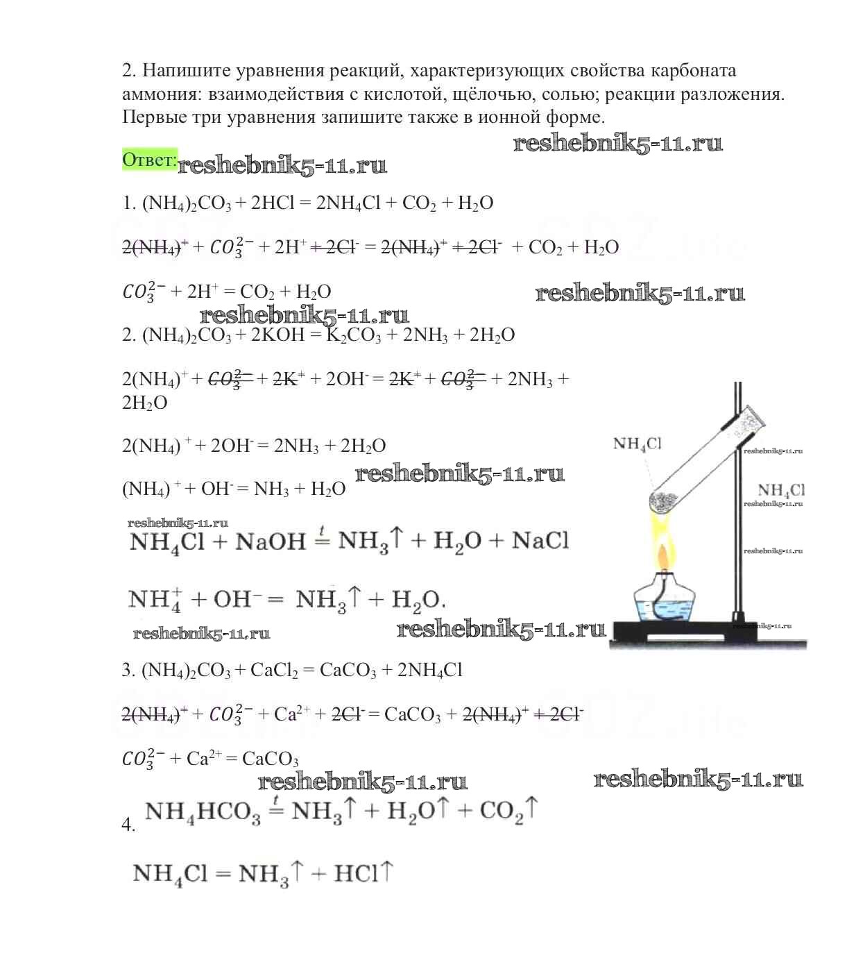 Готовая домашняя работа с ответами по Химии за 9 класс Габриелян Учебник Вертикаль Дрофа 2014 ФГОС - §30. Соли аммония 2