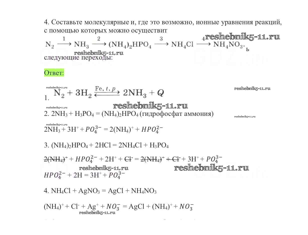 Готовая домашняя работа с ответами по Химии за 9 класс Габриелян Учебник Вертикаль Дрофа 2014 ФГОС - §30. Соли аммония 4