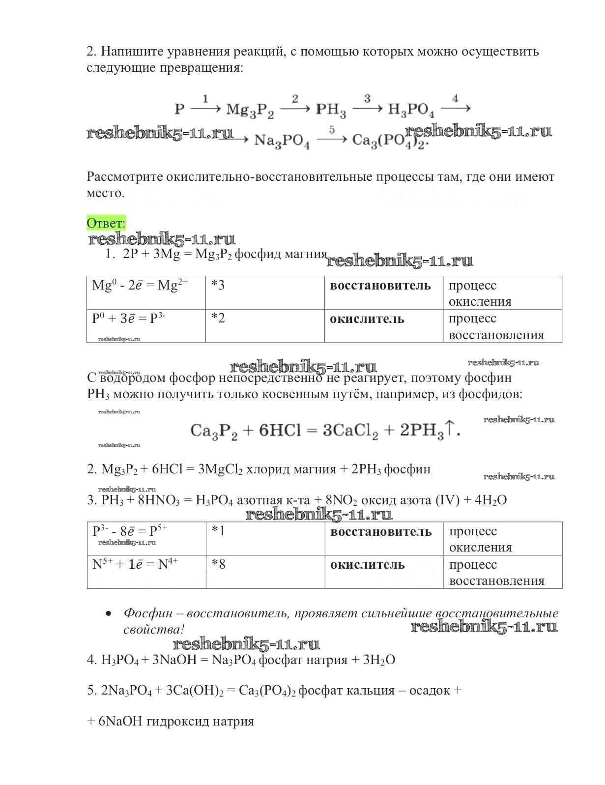 Готовая домашняя работа с ответами по Химии за 9 класс Габриелян Учебник Вертикаль Дрофа 2014 ФГОС - §32. Фосфор и его соединения 2