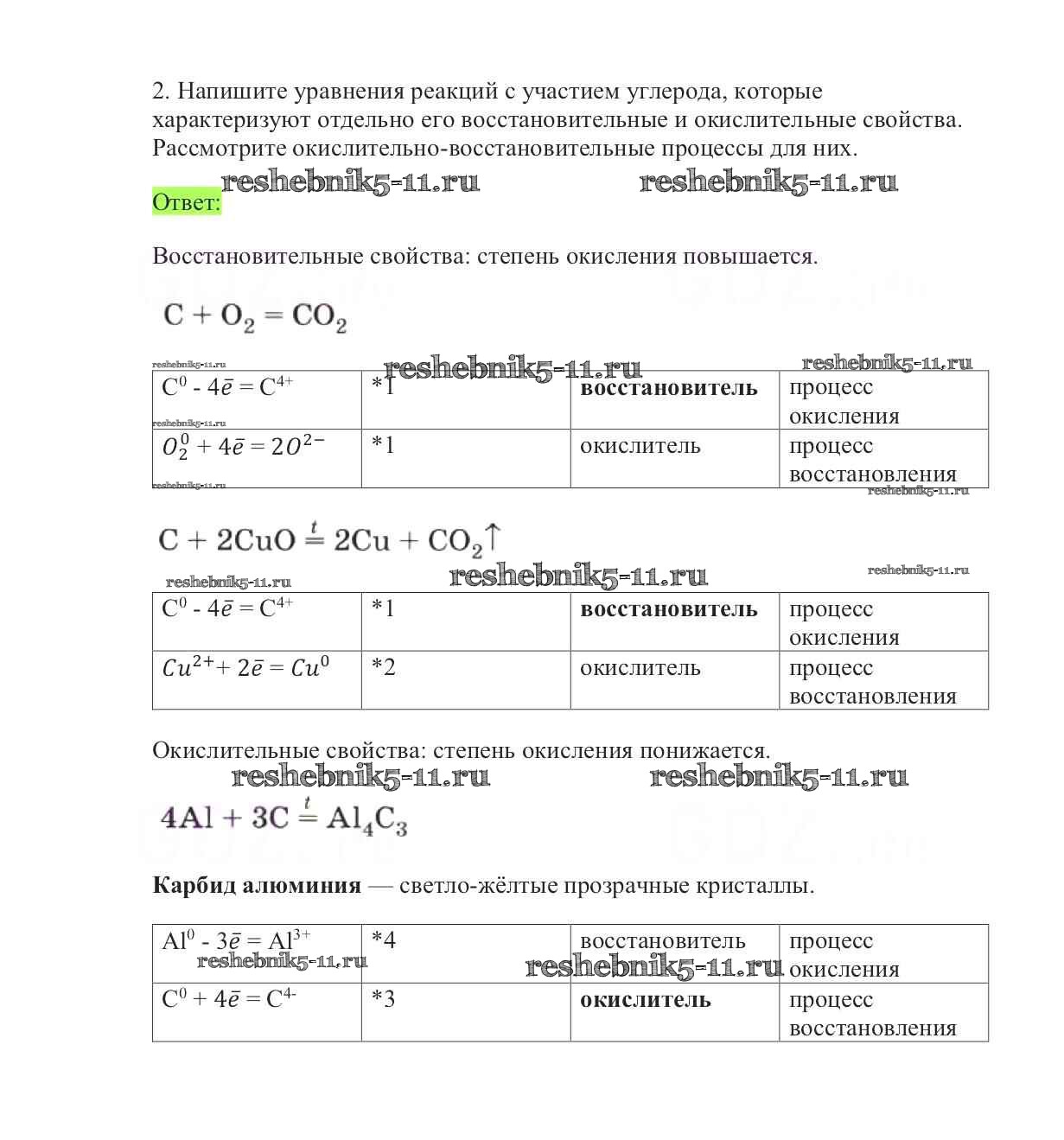 Готовая домашняя работа с ответами по Химии за 9 класс Габриелян Учебник Вертикаль Дрофа 2014 ФГОС - §33. Углерод 2