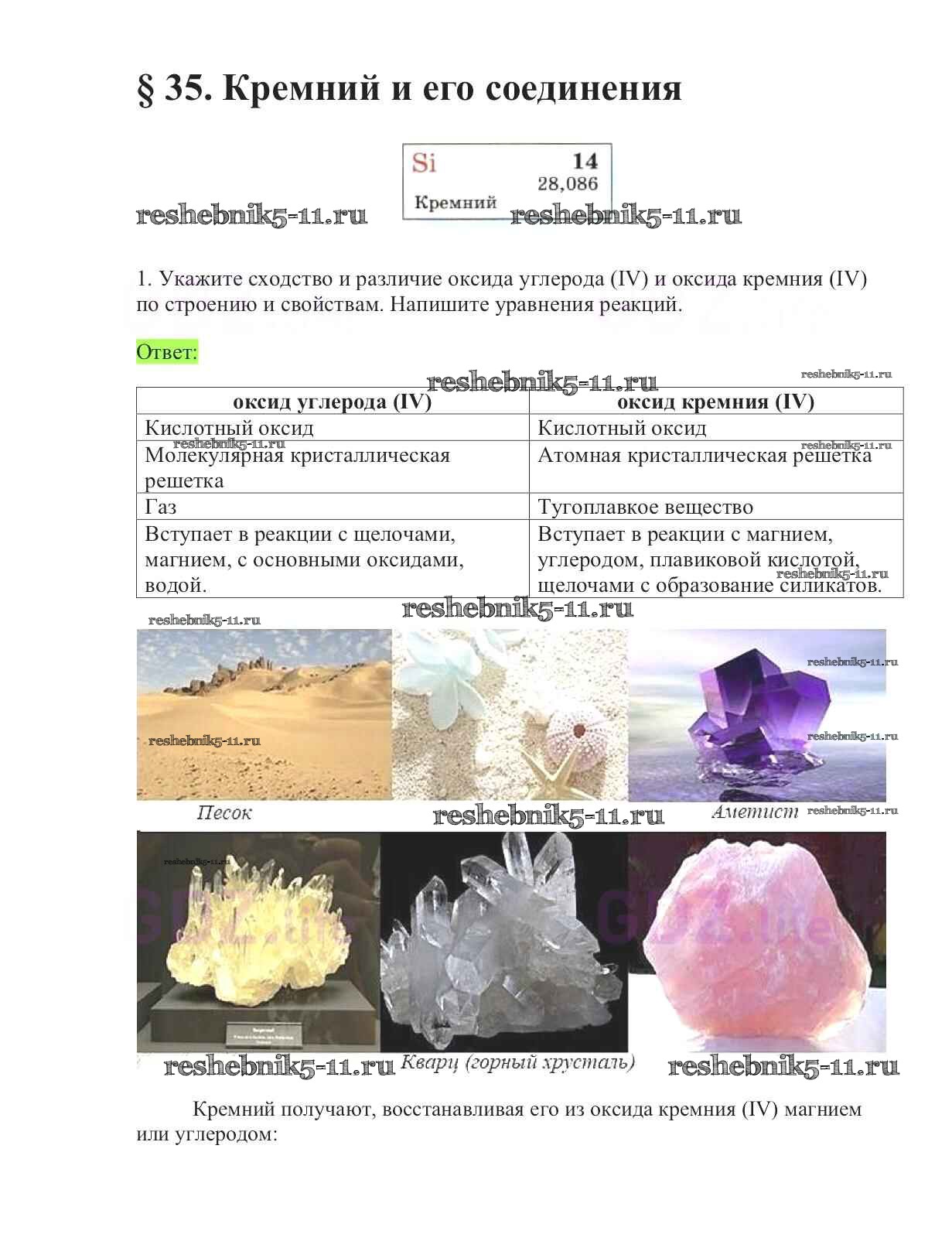 Готовая домашняя работа с ответами по Химии за 9 класс Габриелян Учебник Вертикаль Дрофа 2014 ФГОС - §35. Кремний и его соединения 1