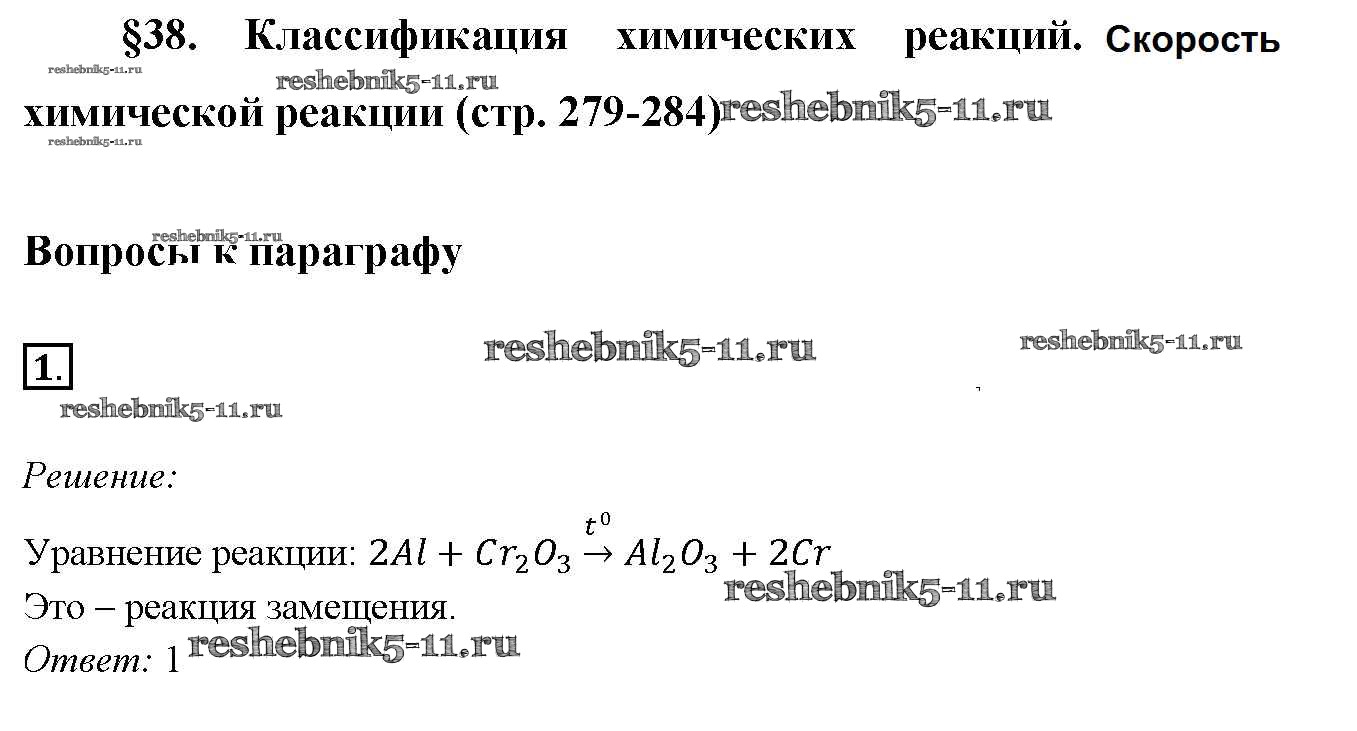 Готовая домашняя работа с ответами по Химии за 9 класс Габриелян Учебник Вертикаль Дрофа 2014 ФГОС - §38. Классификация химических реакций. Скорость химической реакции 1