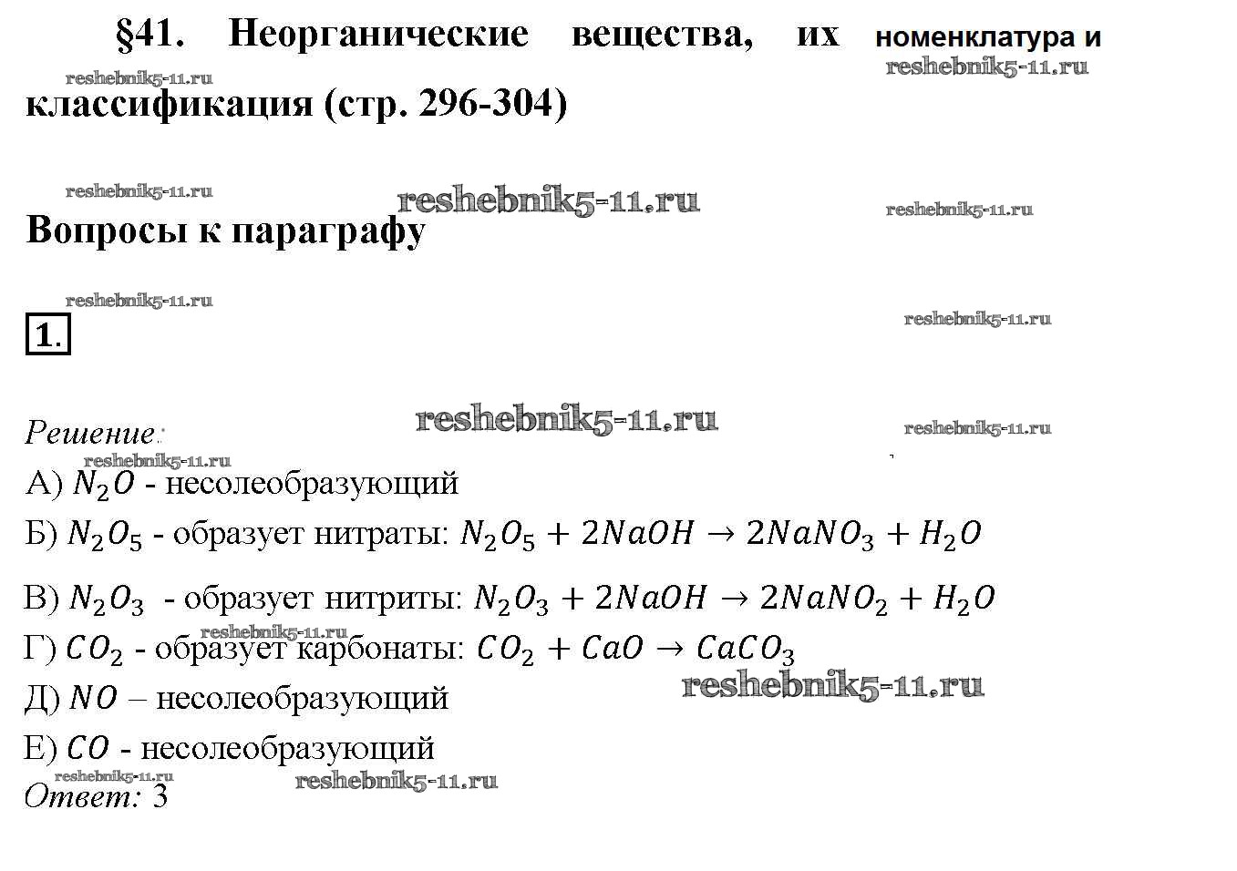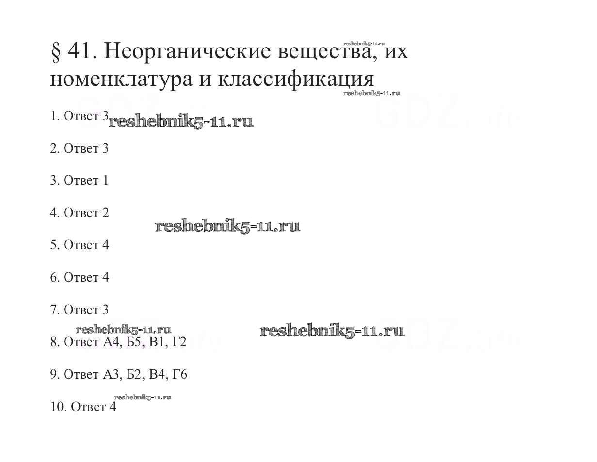 Готовая домашняя работа с ответами по Химии за 9 класс Габриелян Учебник Вертикаль Дрофа 2014 ФГОС - §41. Неорганические вещества, их номенклатура и классификация 1