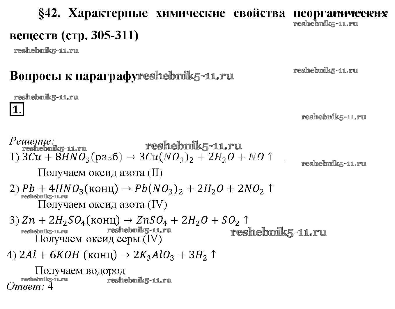 Готовая домашняя работа с ответами по Химии за 9 класс Габриелян Учебник Вертикаль Дрофа 2014 ФГОС - §42. Характерные химические свойства неорганических веществ 1