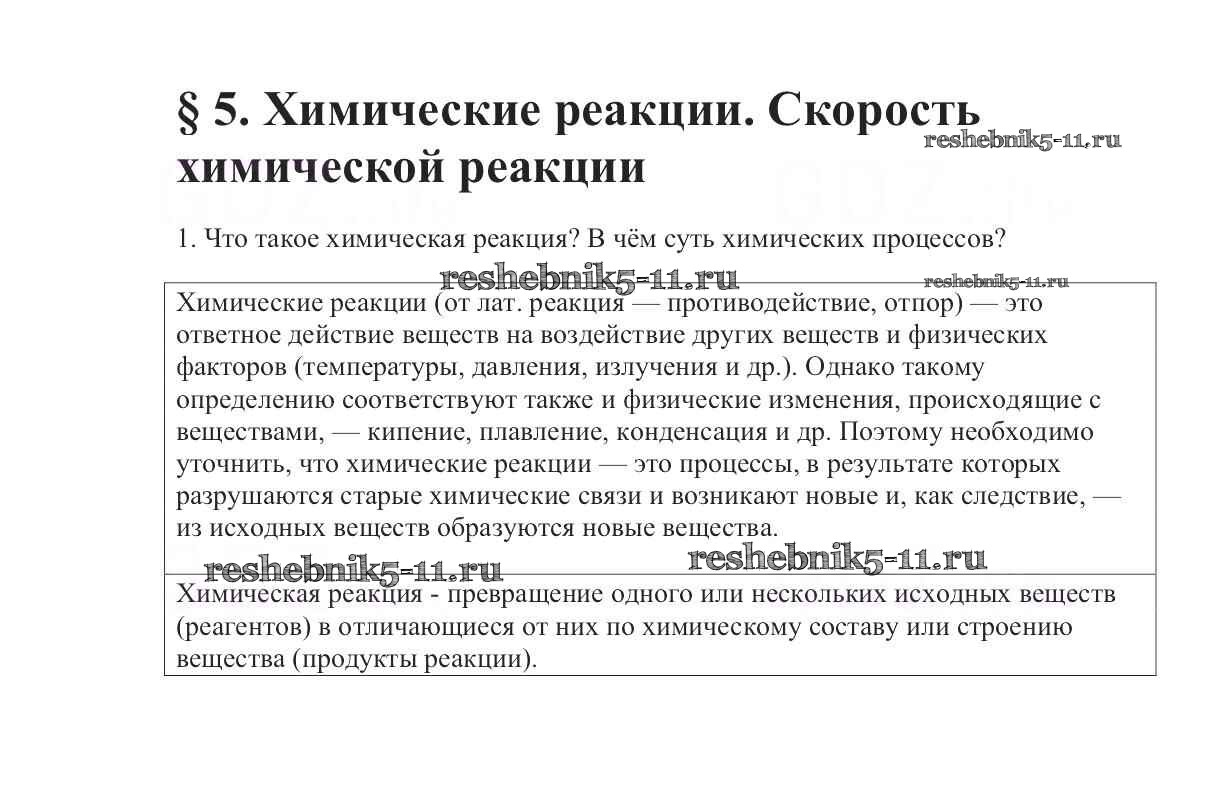 Готовая домашняя работа с ответами по Химии за 9 класс Габриелян Учебник Вертикаль Дрофа 2014 ФГОС - §5. Химические реакции. Скорость химической реакции 1