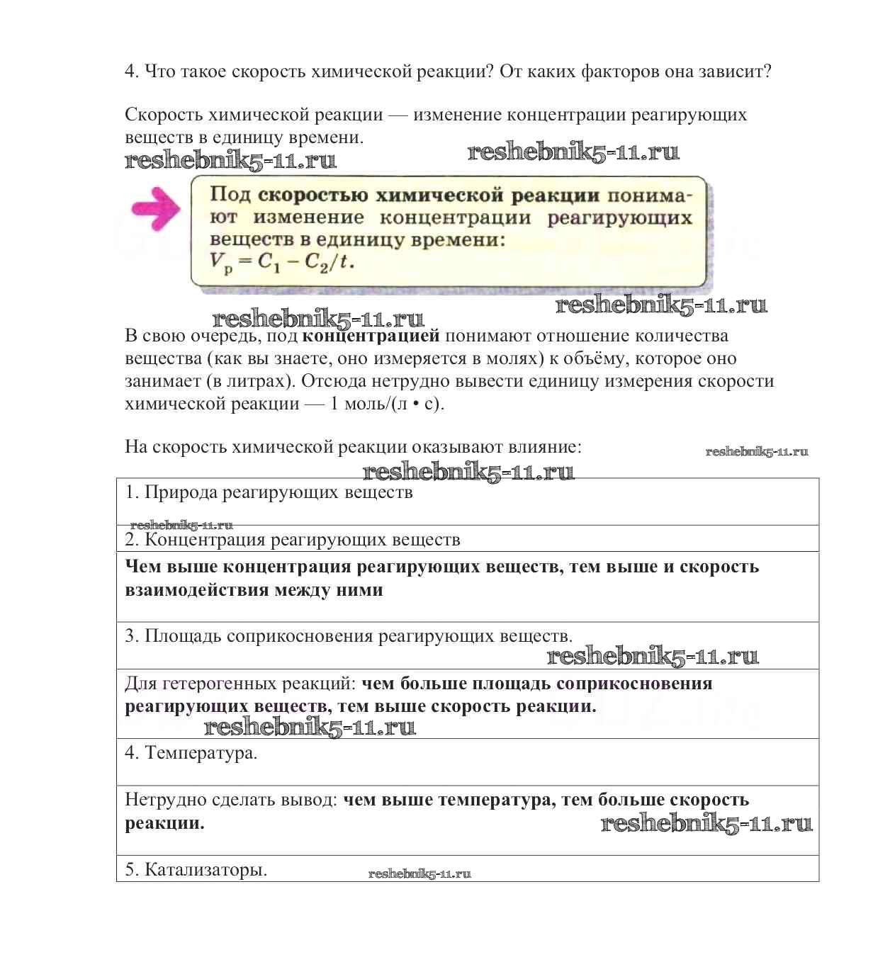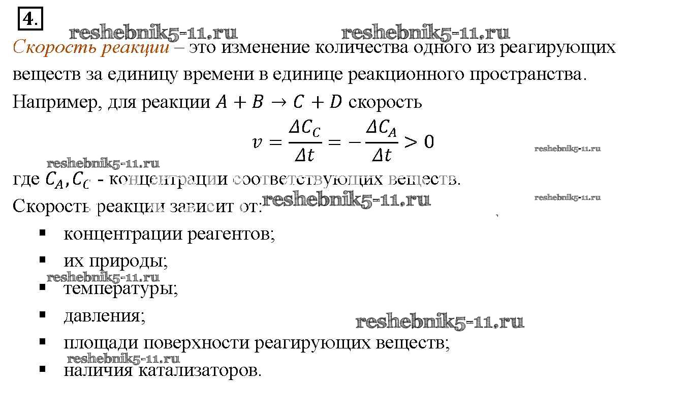 Готовая домашняя работа с ответами по Химии за 9 класс Габриелян Учебник Вертикаль Дрофа 2014 ФГОС - §5. Химические реакции. Скорость химической реакции 4