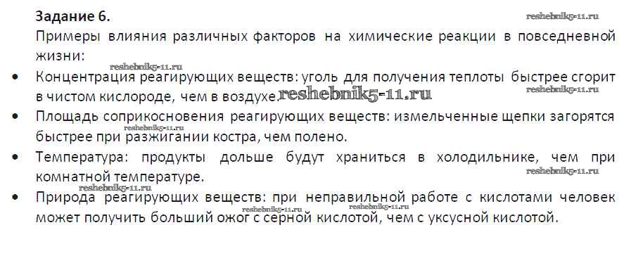 Готовая домашняя работа с ответами по Химии за 9 класс Габриелян Учебник Вертикаль Дрофа 2014 ФГОС - §5. Химические реакции. Скорость химической реакции 6