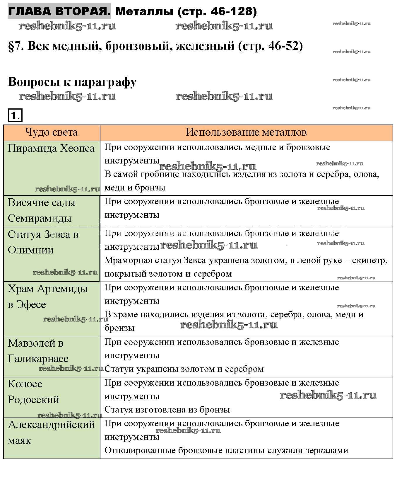Готовая домашняя работа с ответами по Химии за 9 класс Габриелян Учебник Вертикаль Дрофа 2014 ФГОС - §7. Век медный, бронзовый, железный 1