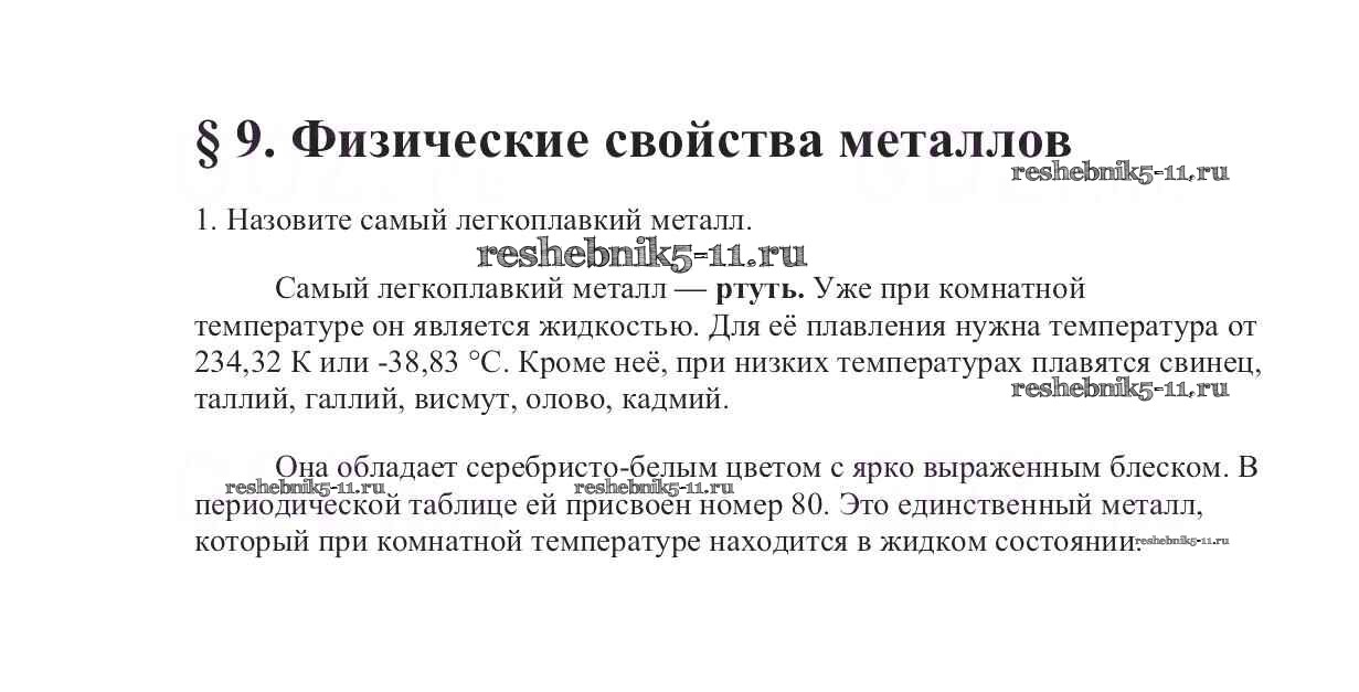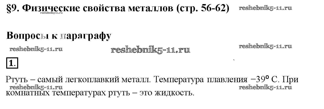 Готовая домашняя работа с ответами по Химии за 9 класс Габриелян Учебник Вертикаль Дрофа 2014 ФГОС - §9. Физические свойства металлов 1