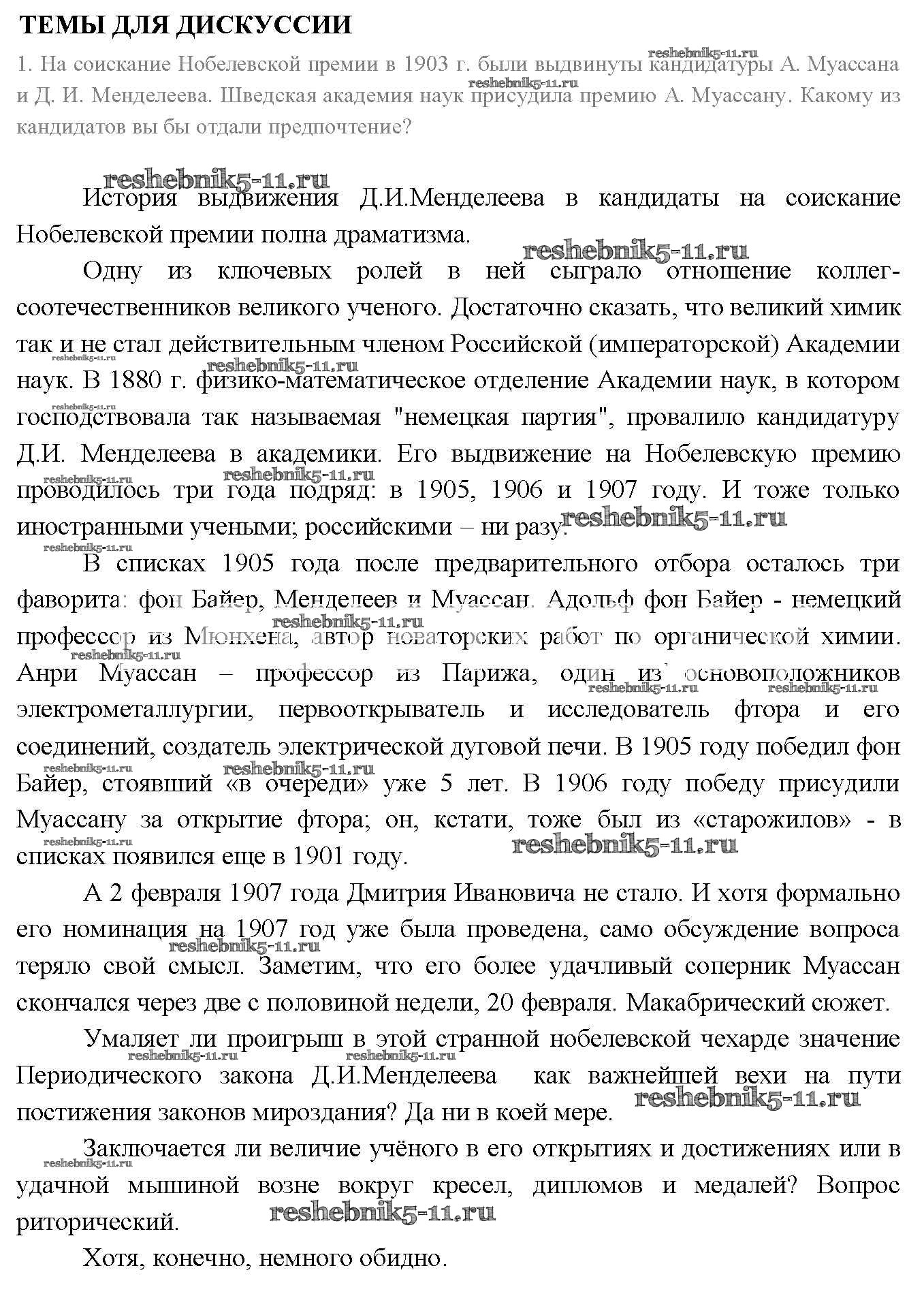 Готовая домашняя работа с ответами по Химии за 9 класс Габриелян Учебник Вертикаль Дрофа 2014 ФГОС - Темы для дискуссии 1