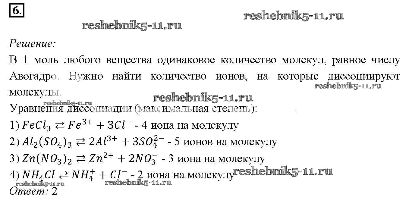 Готовая домашняя работа с ответами по Химии за 9 класс Габриелян Учебник Вертикаль Дрофа 2014 ФГОС - §39. Диссоциация электролитов в водных растворах. Ионные уравнения реакций 6