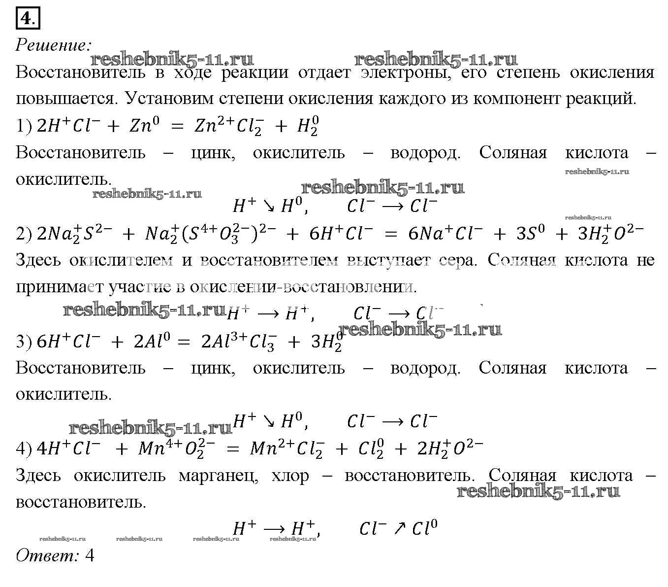 Готовая домашняя работа с ответами по Химии за 9 класс Габриелян Учебник Вертикаль Дрофа 2014 ФГОС - §40. Окислительно-восстановительные реакции 4