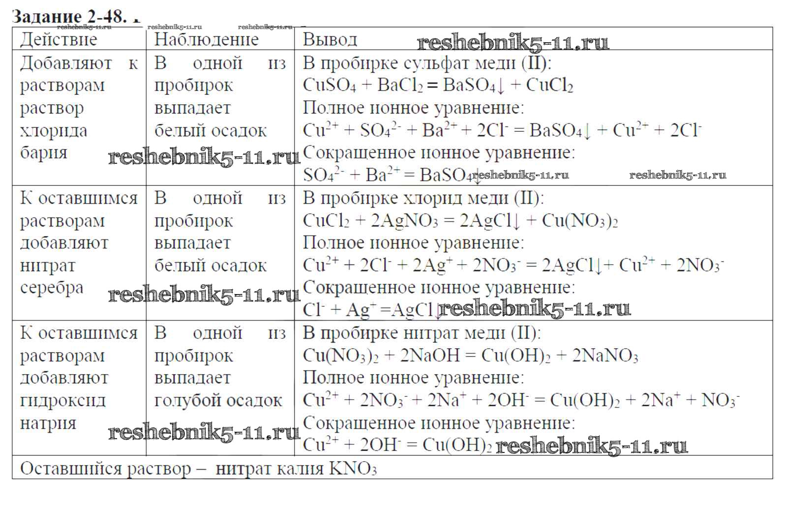 Готовая домашняя работа с ответами по Химии за 9 класс Кузнецова, Левкин Задачник Алгоритм успеха Вентана-граф 2015 ФГОС - Глава №2. Теория электрической диссоциации 2-48