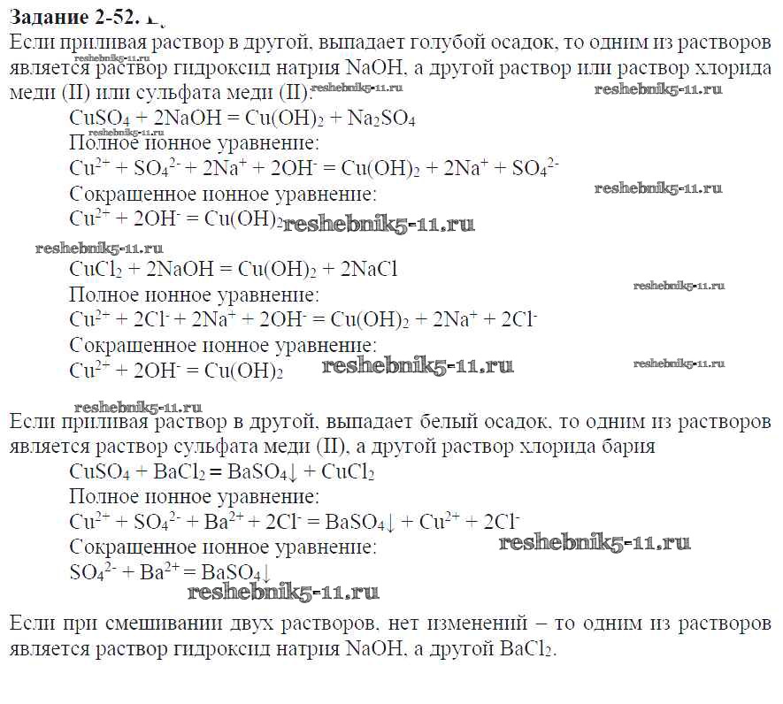 Готовая домашняя работа с ответами по Химии за 9 класс Кузнецова, Левкин Задачник Алгоритм успеха Вентана-граф 2015 ФГОС - Глава №2. Теория электрической диссоциации 2-52