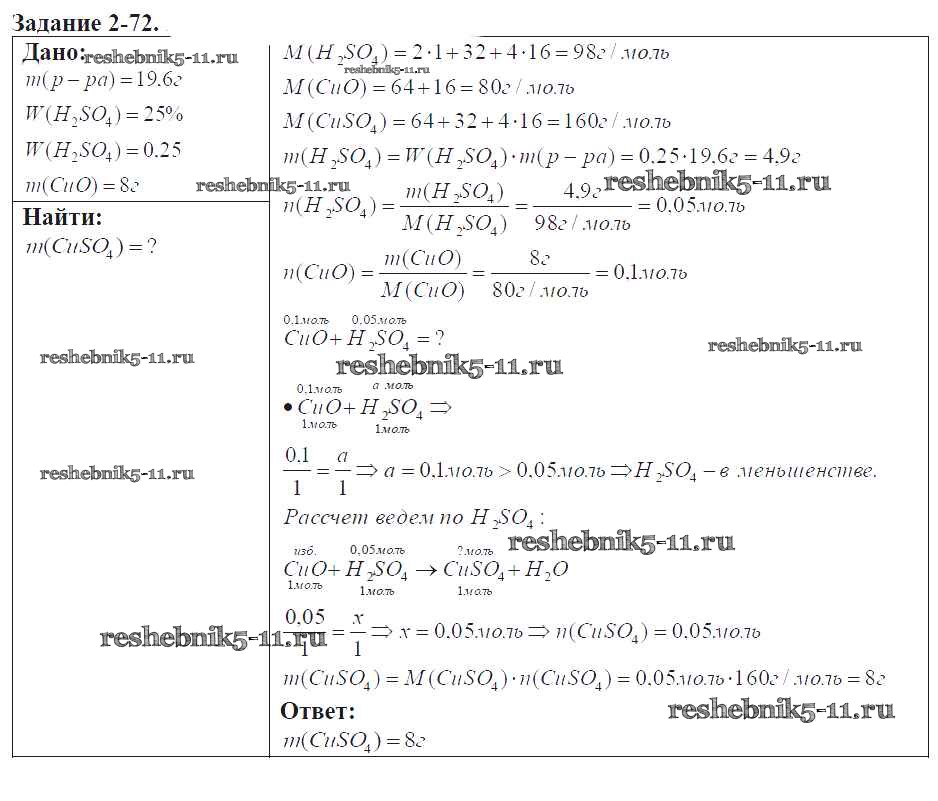 Готовая домашняя работа с ответами по Химии за 9 класс Кузнецова, Левкин Задачник Алгоритм успеха Вентана-граф 2015 ФГОС - Глава №2. Теория электрической диссоциации 2-72