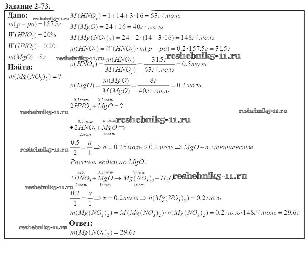 Готовая домашняя работа с ответами по Химии за 9 класс Кузнецова, Левкин Задачник Алгоритм успеха Вентана-граф 2015 ФГОС - Глава №2. Теория электрической диссоциации 2-73