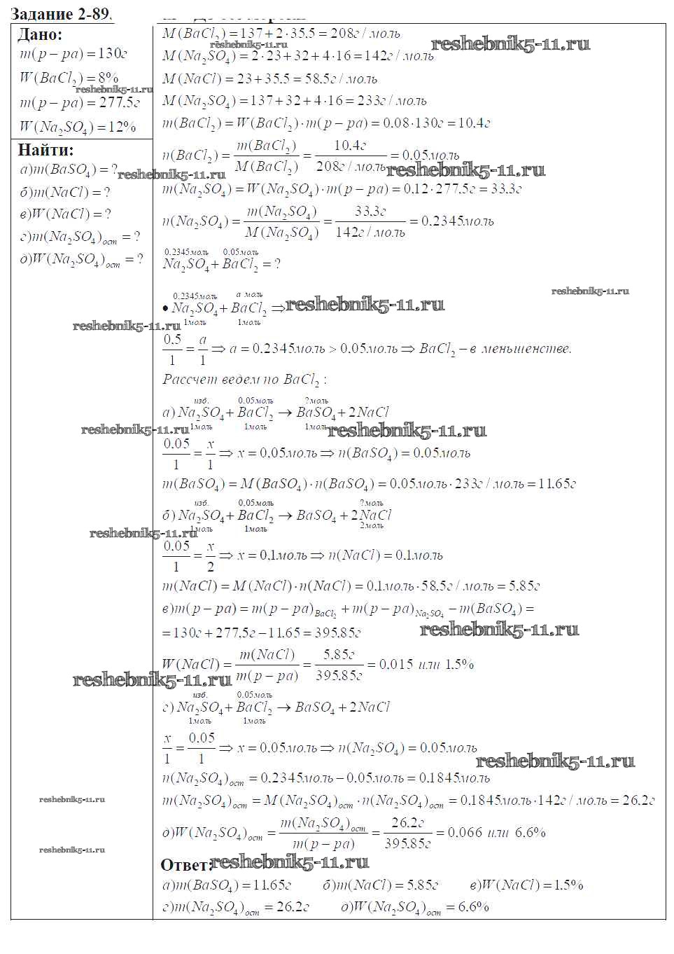 Готовая домашняя работа с ответами по Химии за 9 класс Кузнецова, Левкин Задачник Алгоритм успеха Вентана-граф 2015 ФГОС - Глава №2. Теория электрической диссоциации 2-89