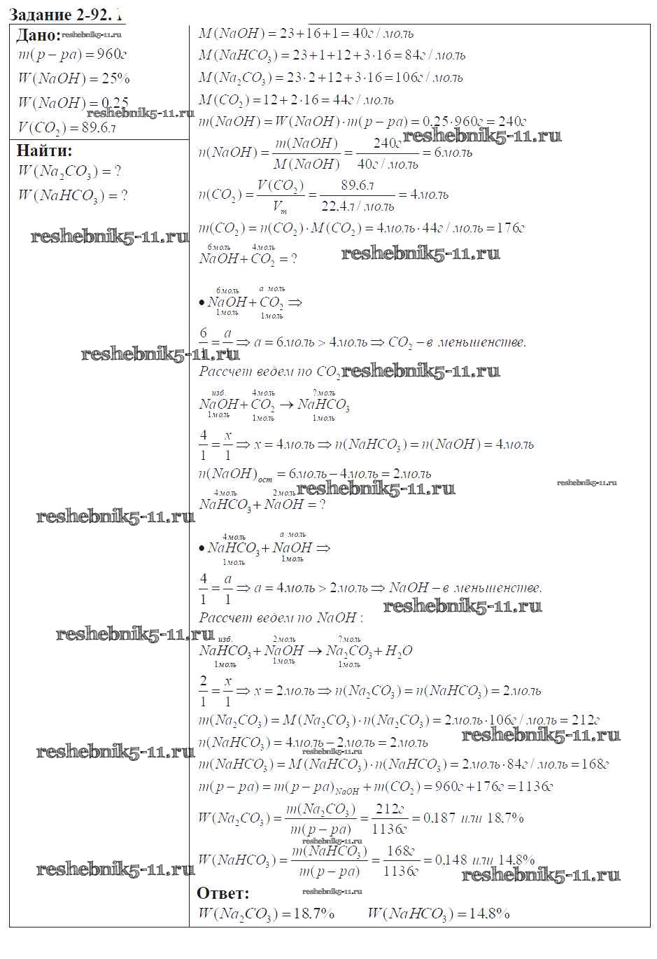 Готовая домашняя работа с ответами по Химии за 9 класс Кузнецова, Левкин Задачник Алгоритм успеха Вентана-граф 2015 ФГОС - Глава №2. Теория электрической диссоциации 2-92