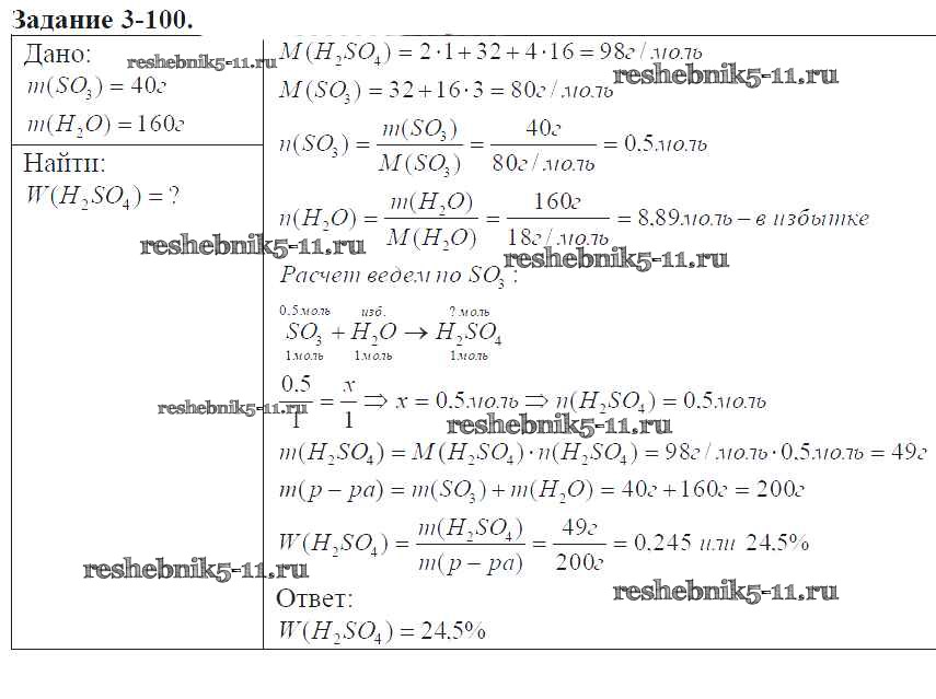 Готовая домашняя работа с ответами по Химии за 9 класс Кузнецова, Левкин Задачник Алгоритм успеха Вентана-граф 2015 ФГОС - Глава №3. Сера. Соединения серы 3-100