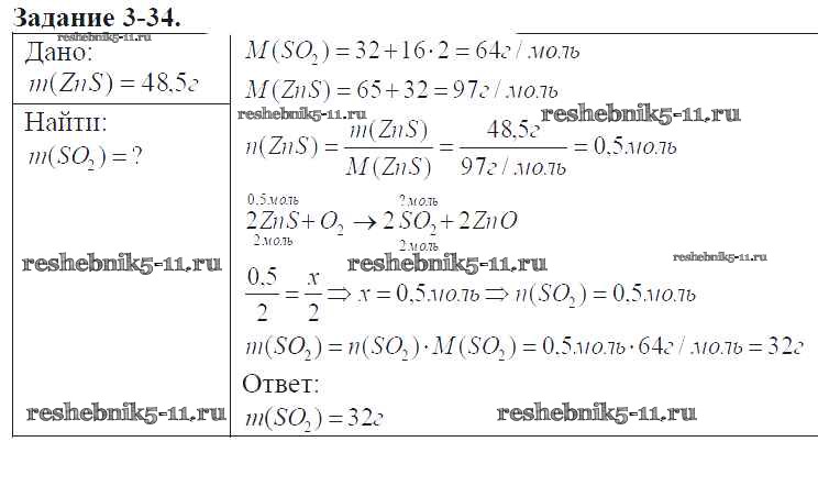 Готовая домашняя работа с ответами по Химии за 9 класс Кузнецова, Левкин Задачник Алгоритм успеха Вентана-граф 2015 ФГОС - Глава №3. Сера. Соединения серы 3-34