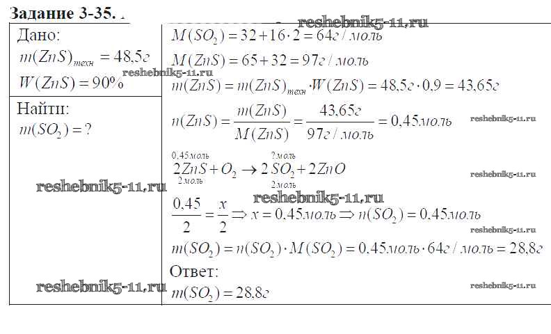 Готовая домашняя работа с ответами по Химии за 9 класс Кузнецова, Левкин Задачник Алгоритм успеха Вентана-граф 2015 ФГОС - Глава №3. Сера. Соединения серы 3-35