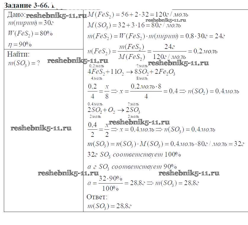 Готовая домашняя работа с ответами по Химии за 9 класс Кузнецова, Левкин Задачник Алгоритм успеха Вентана-граф 2015 ФГОС - Глава №3. Сера. Соединения серы 3-66