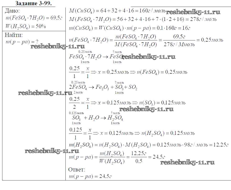 Готовая домашняя работа с ответами по Химии за 9 класс Кузнецова, Левкин Задачник Алгоритм успеха Вентана-граф 2015 ФГОС - Глава №3. Сера. Соединения серы 3-99