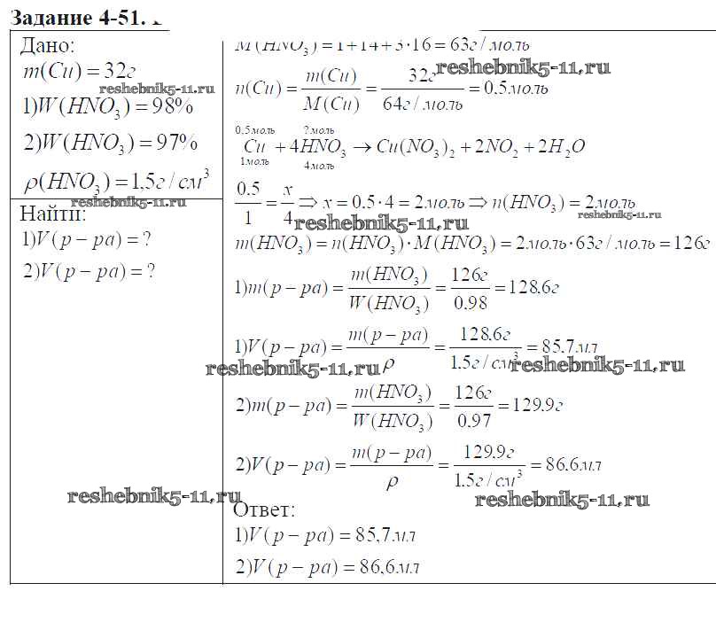 Готовая домашняя работа с ответами по Химии за 9 класс Кузнецова, Левкин Задачник Алгоритм успеха Вентана-граф 2015 ФГОС - Глава №4. Азот. Соединения азота 4-51
