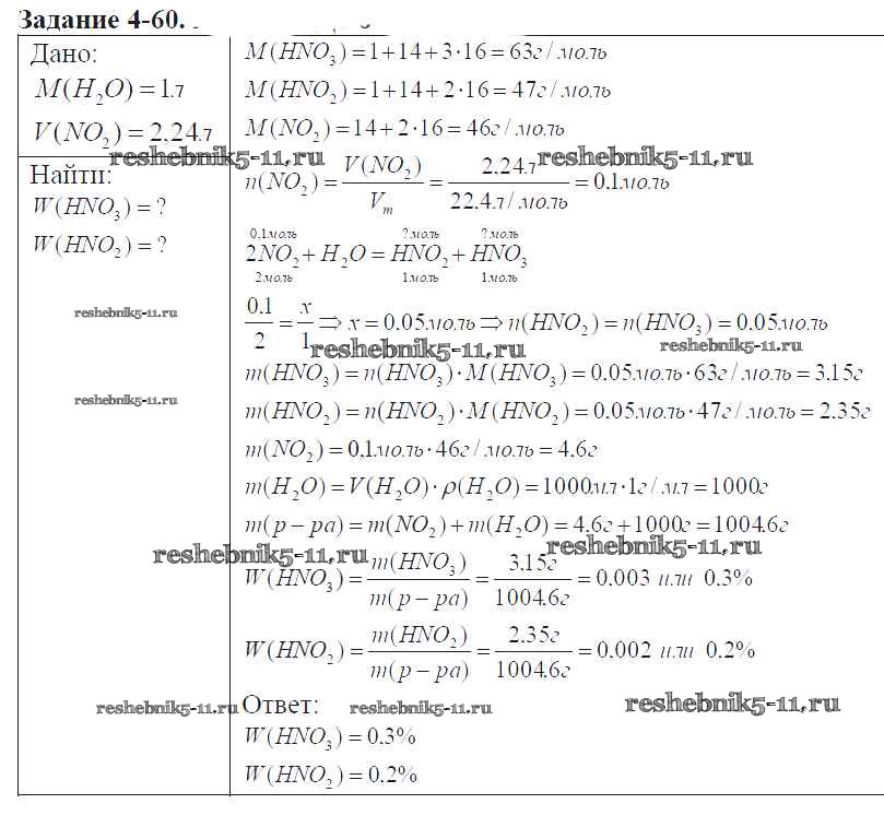 Готовая домашняя работа с ответами по Химии за 9 класс Кузнецова, Левкин Задачник Алгоритм успеха Вентана-граф 2015 ФГОС - Глава №4. Азот. Соединения азота 4-60