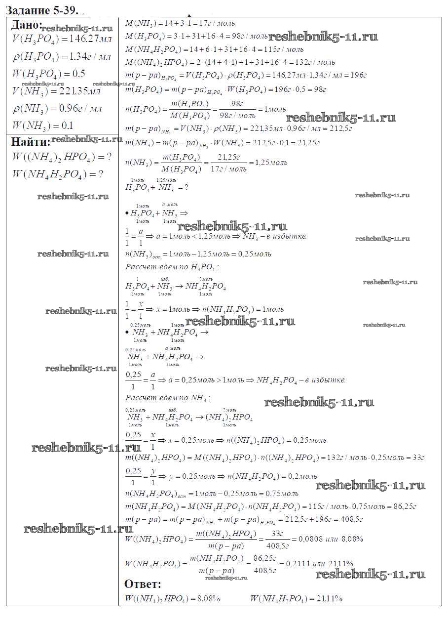 Готовая домашняя работа с ответами по Химии за 9 класс Кузнецова, Левкин Задачник Алгоритм успеха Вентана-граф 2015 ФГОС - Глава №5. Фосфор. Соединения фосфора 5-39