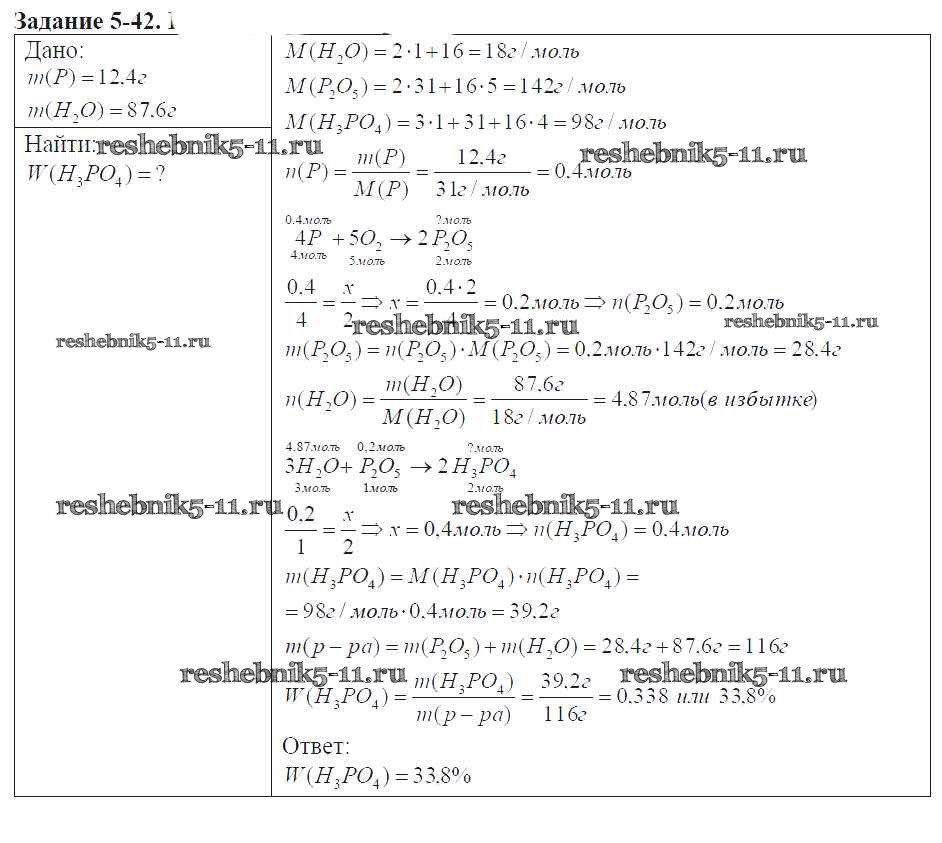 Готовая домашняя работа с ответами по Химии за 9 класс Кузнецова, Левкин Задачник Алгоритм успеха Вентана-граф 2015 ФГОС - Глава №5. Фосфор. Соединения фосфора 5-42