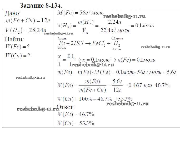 Готовая домашняя работа с ответами по Химии за 9 класс Кузнецова, Левкин Задачник Алгоритм успеха Вентана-граф 2015 ФГОС - Глава №8. Металлы 8-134