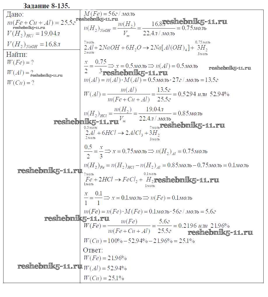 Готовая домашняя работа с ответами по Химии за 9 класс Кузнецова, Левкин Задачник Алгоритм успеха Вентана-граф 2015 ФГОС - Глава №8. Металлы 8-135