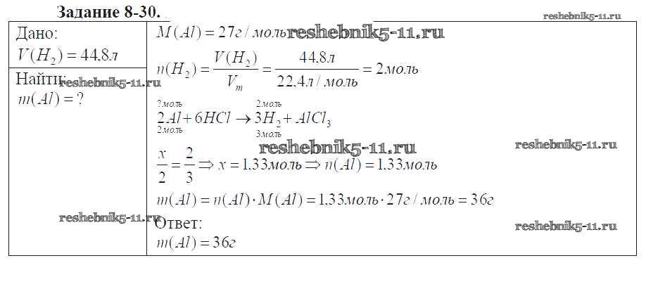 Готовая домашняя работа с ответами по Химии за 9 класс Кузнецова, Левкин Задачник Алгоритм успеха Вентана-граф 2015 ФГОС - Глава №8. Металлы 8-30