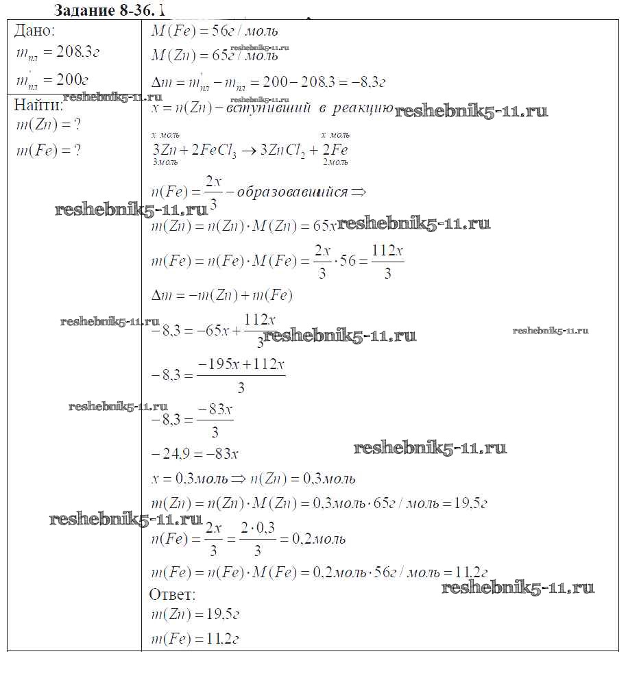 Готовая домашняя работа с ответами по Химии за 9 класс Кузнецова, Левкин Задачник Алгоритм успеха Вентана-граф 2015 ФГОС - Глава №8. Металлы 8-36