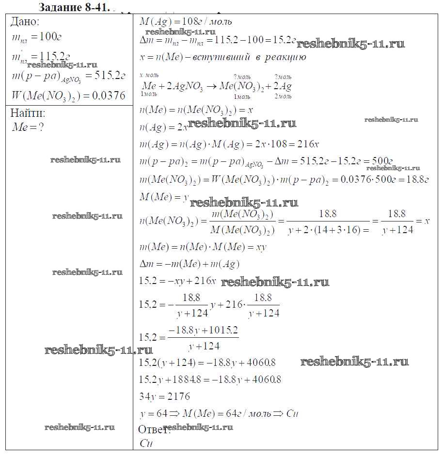 Готовая домашняя работа с ответами по Химии за 9 класс Кузнецова, Левкин Задачник Алгоритм успеха Вентана-граф 2015 ФГОС - Глава №8. Металлы 8-41