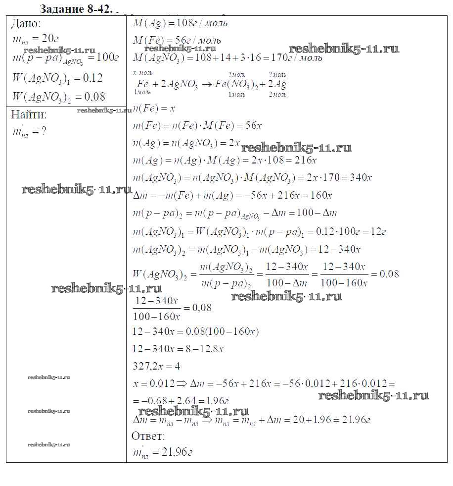 Готовая домашняя работа с ответами по Химии за 9 класс Кузнецова, Левкин Задачник Алгоритм успеха Вентана-граф 2015 ФГОС - Глава №8. Металлы 8-42